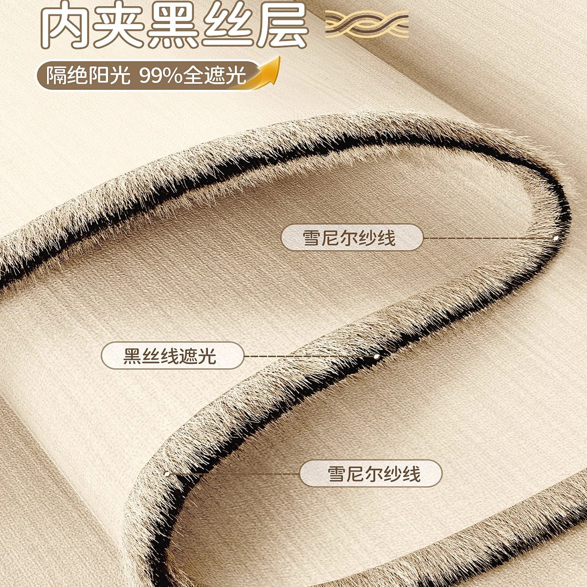 绍兴柯桥窗帘2026新款双面同色雪尼尔卧室全遮光布羊绒奶油风客厅