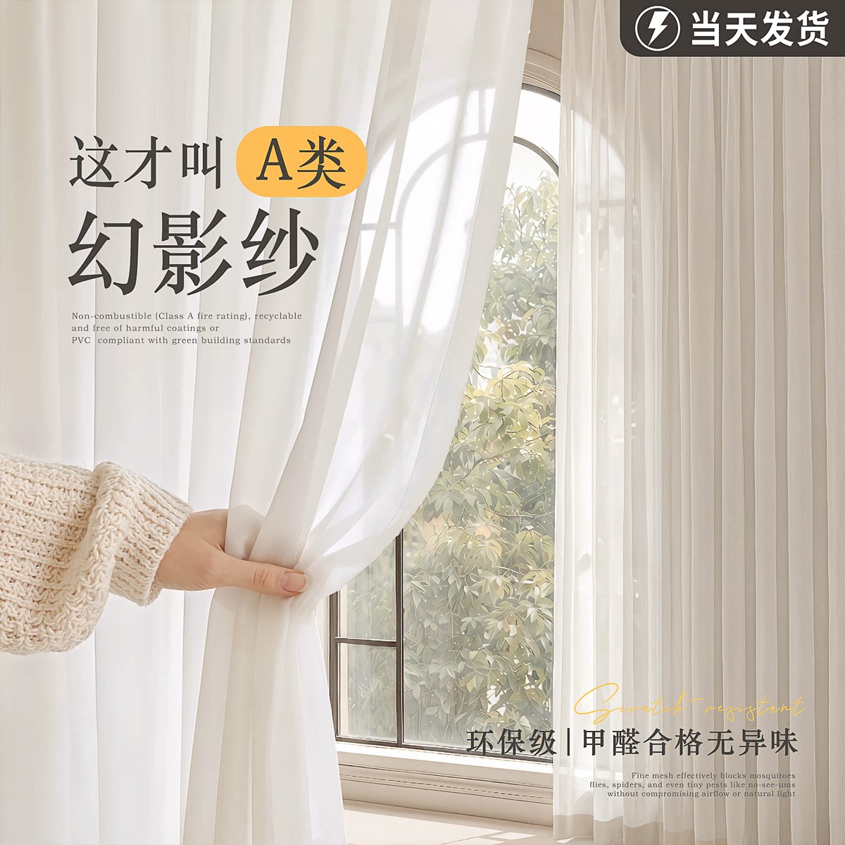 天科创者2025新款金刚纱钻石纱卧室窗帘少女纱帘透光不透人遮阳白纱