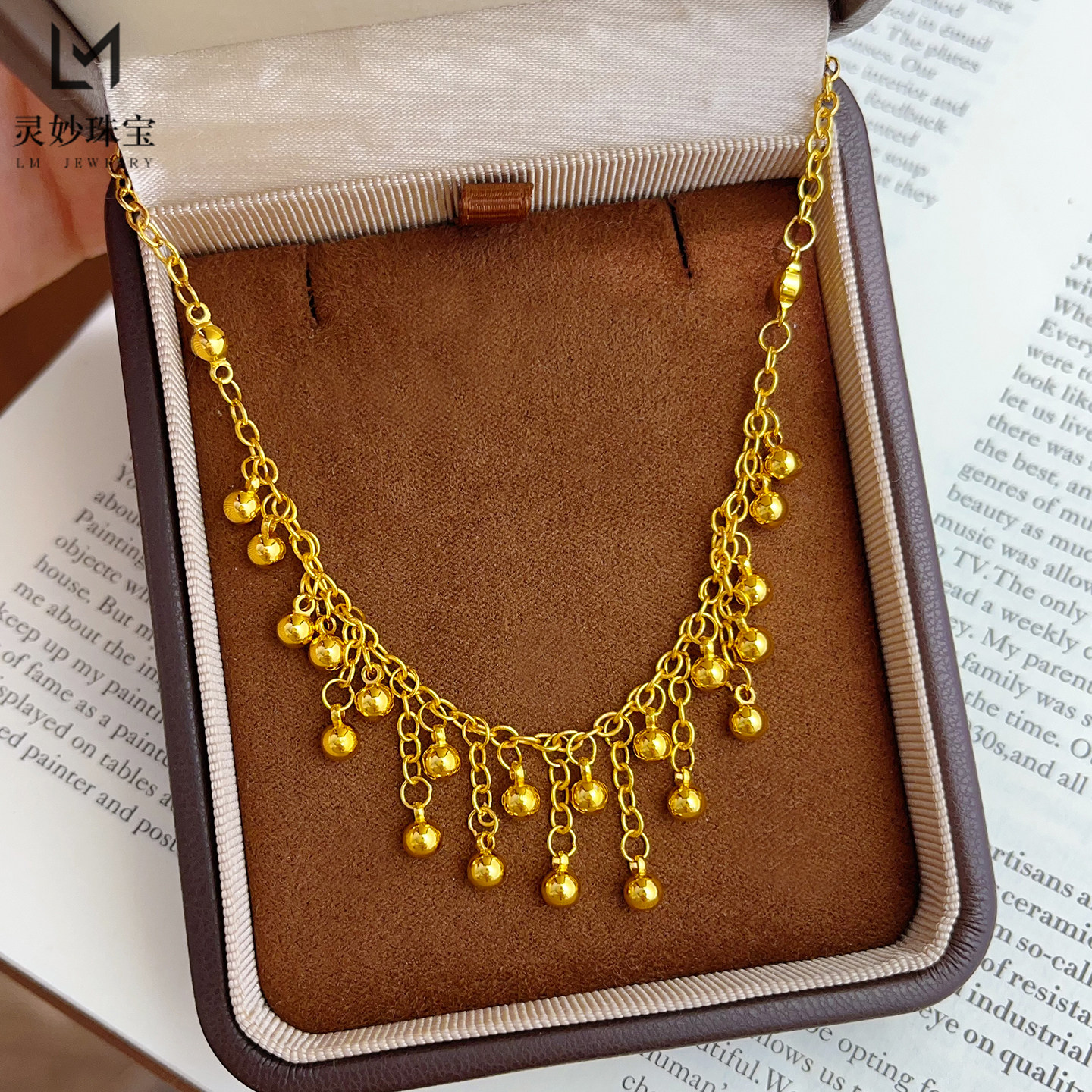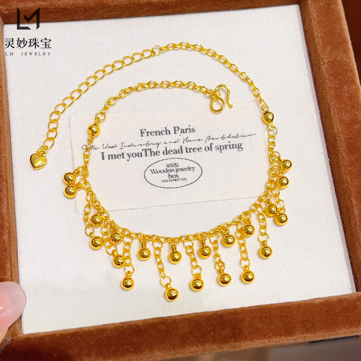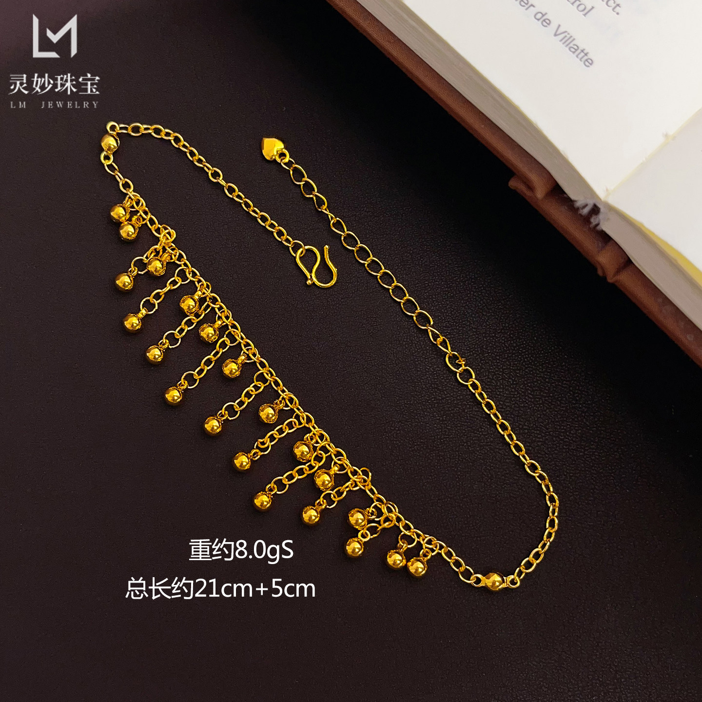 淘宝新中式古法沙金亮面双层小圆珠流苏脚链转运珠脚饰精致时尚送女友