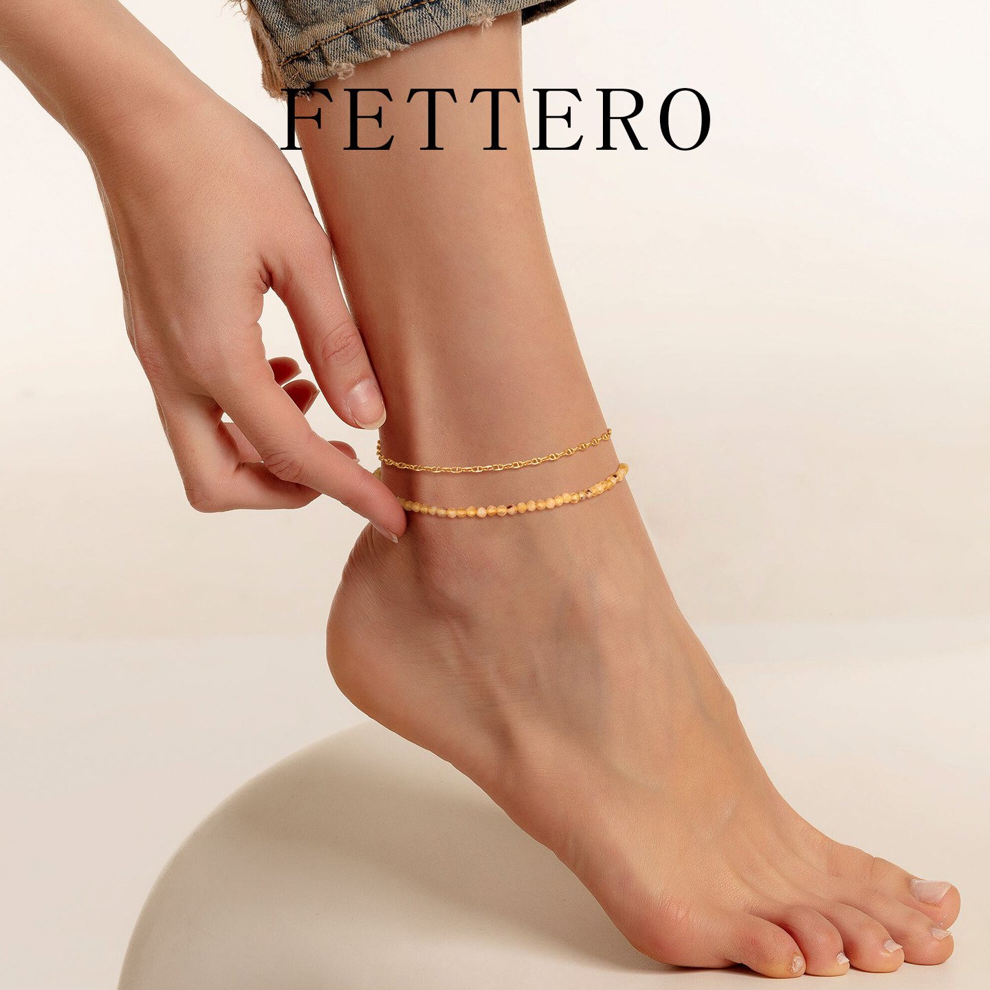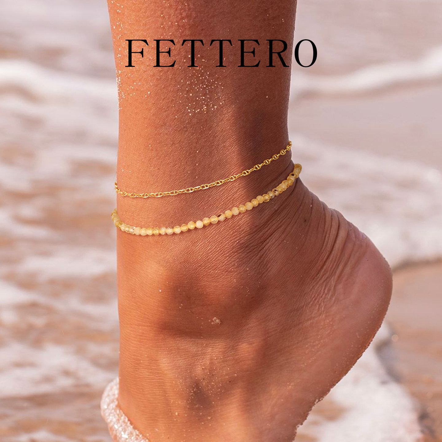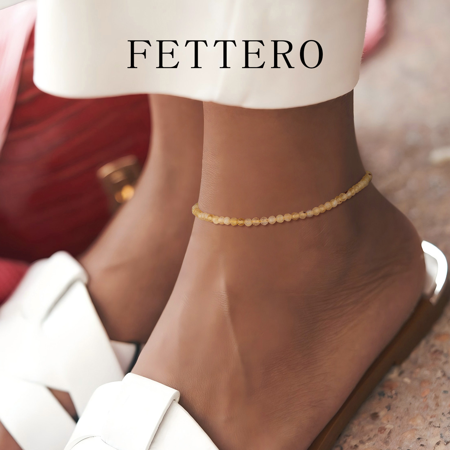 FETTERO金色黄水晶切珠脚链,精选天然黄水晶打造,颗颗切工精致,光泽温润,寓意招财纳福、转运增运。搭配闪耀金色链条,优雅中透出轻奢质感,完美修饰脚踝线条,适合日常佩戴或特殊场合点缀。无论是送给女友、闺蜜,还是作为自我犒赏,都是心意满满的贴心礼物。黄水晶被誉为“财富之石”,象征智慧与 prosperity,佩戴不仅美观,更寄托美好祝愿。轻盈舒适的设计,贴合肌肤,久戴不累。FETTERO脚链,用细节诠释浪漫,让每一步都闪耀自信光芒,是表达关爱与祝福的绝佳选择。