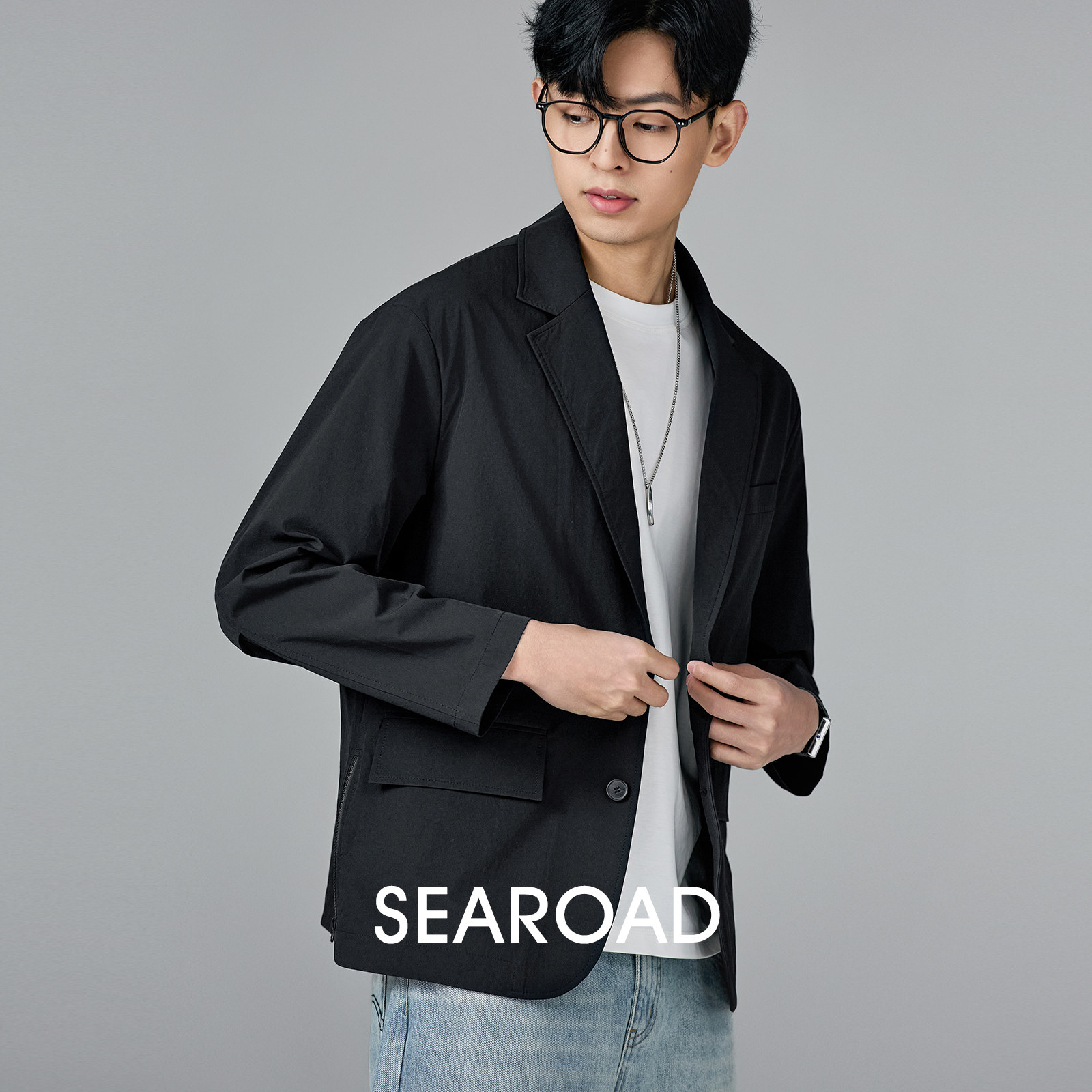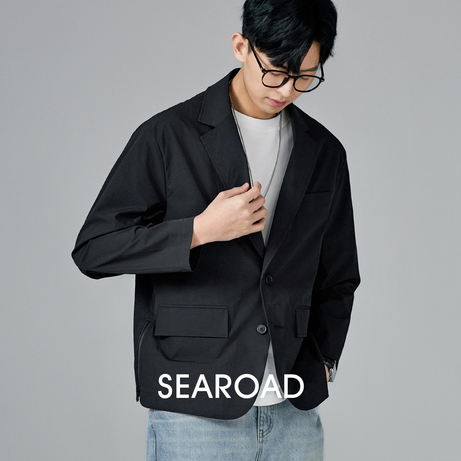 CENLES 美式休闲西装夹克男纯棉宽松日系复古工装外套做旧春