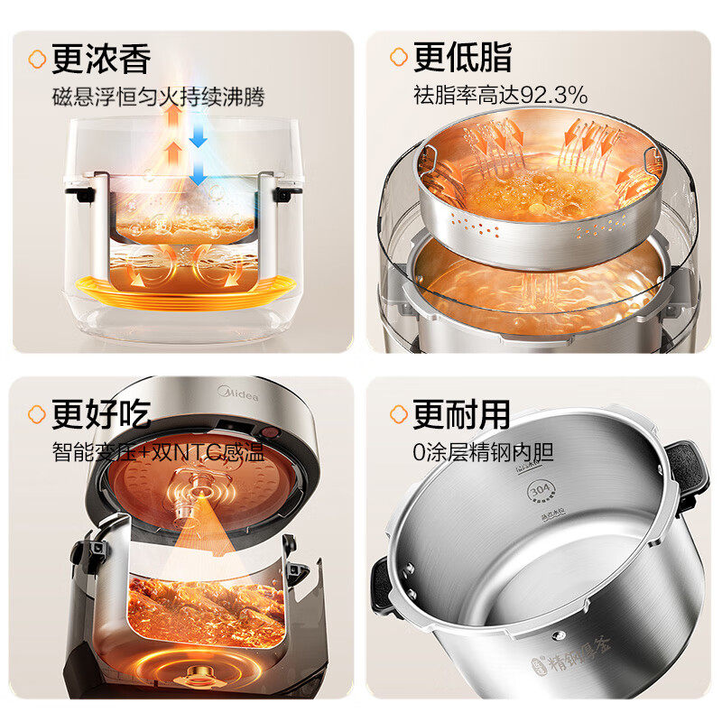 美的低脂浓香电压力锅家用新款不锈钢大容量高压锅电饭煲官方正品
