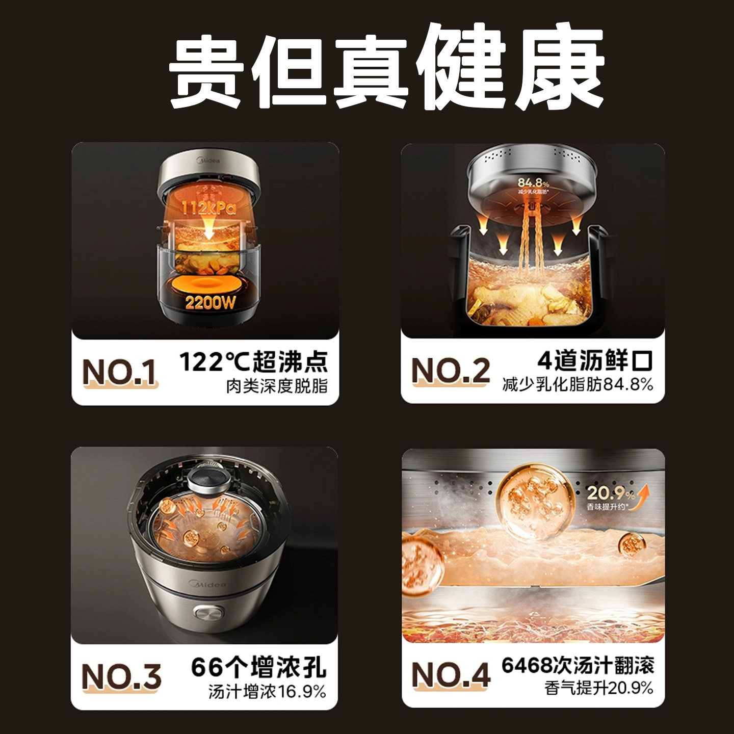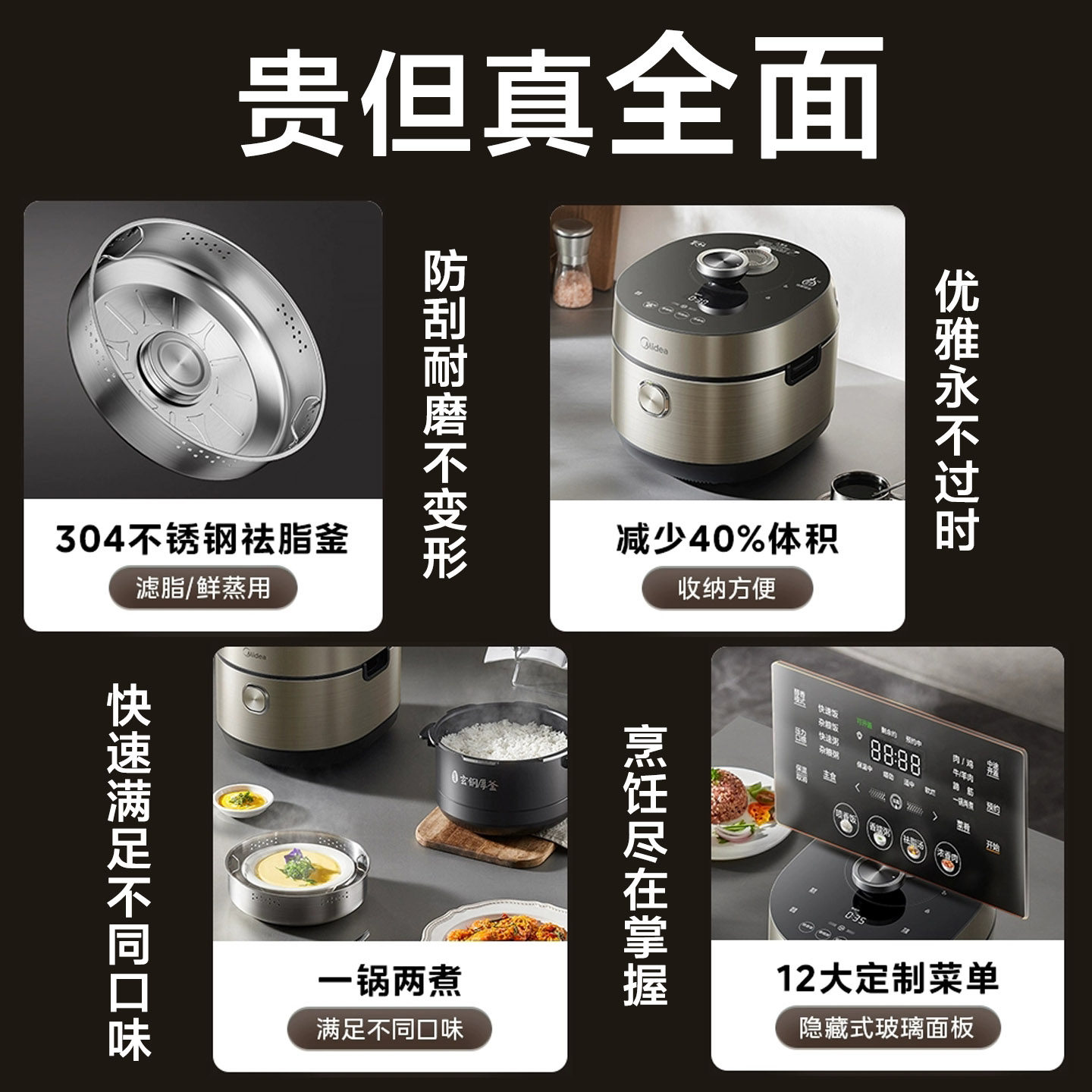 美的低脂浓香电压力锅家用新款不锈钢大容量高压锅电饭煲官方正品