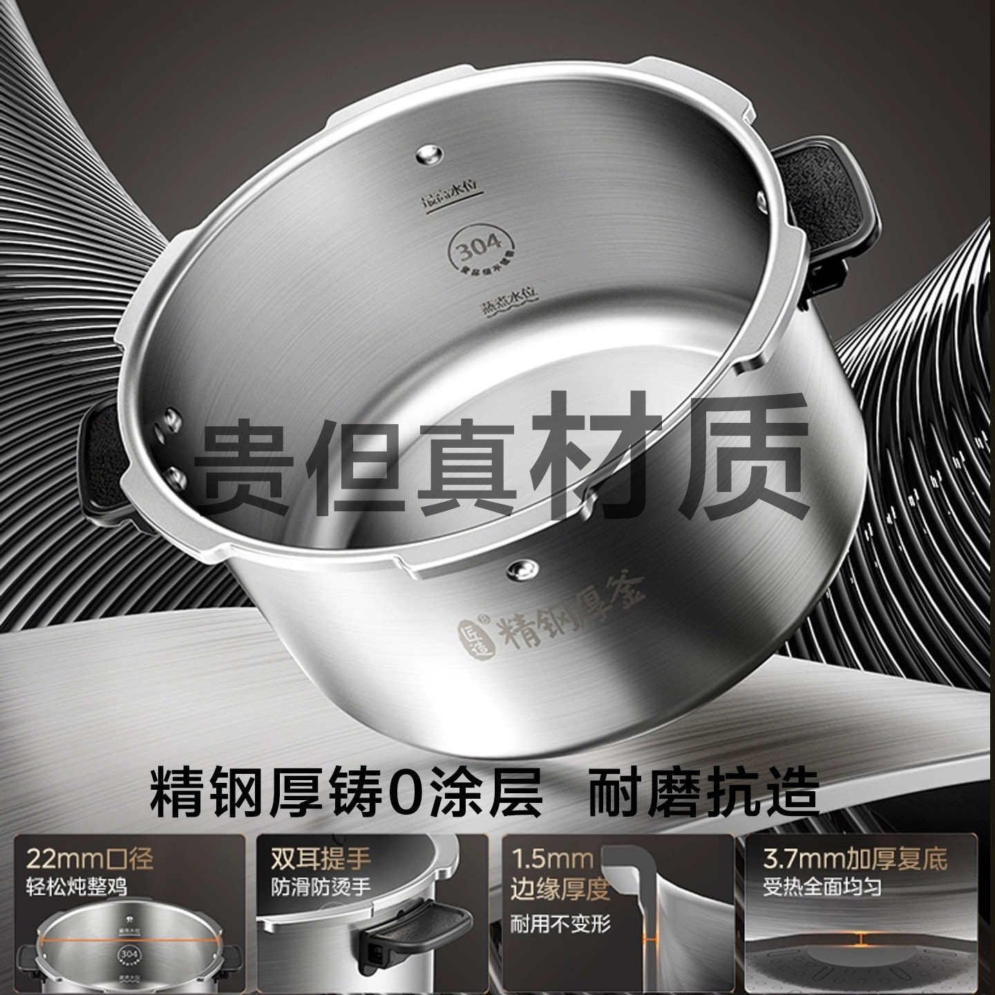 天美的电压力锅0涂层304不锈钢5L双胆电饭锅智能预约家用电高压锅