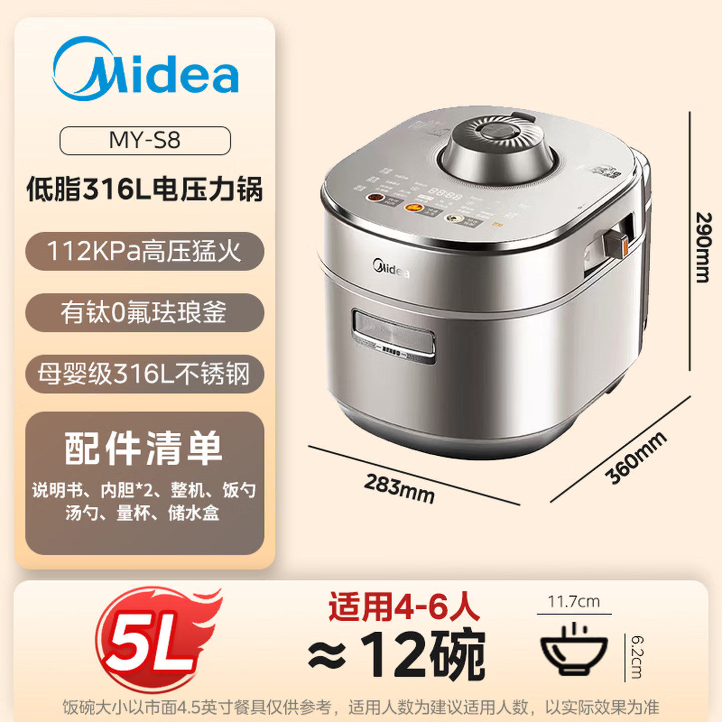 天猫美的MY-S8低脂浓香电压力锅家用超高压112KPa新款电饭煲0涂层双胆