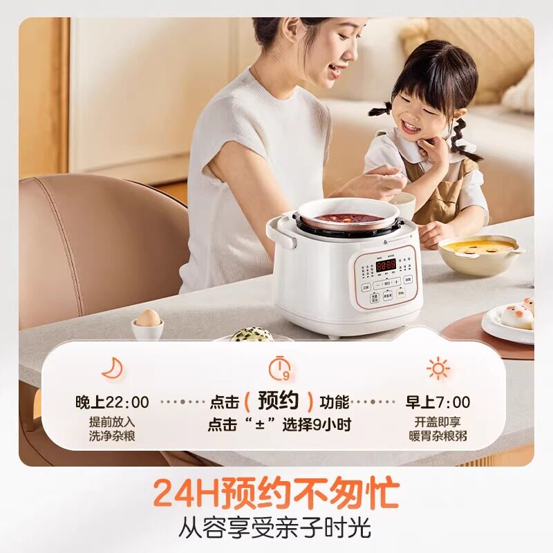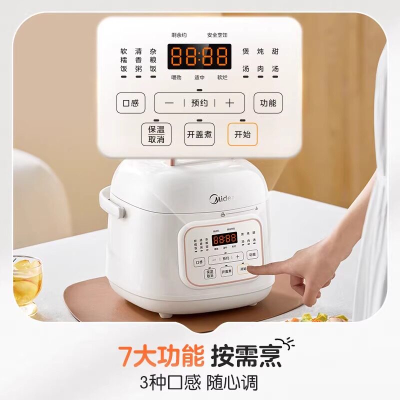 美的电压力锅0涂层钢胆家用1人2-3小型迷你多功能高压电饭锅一体