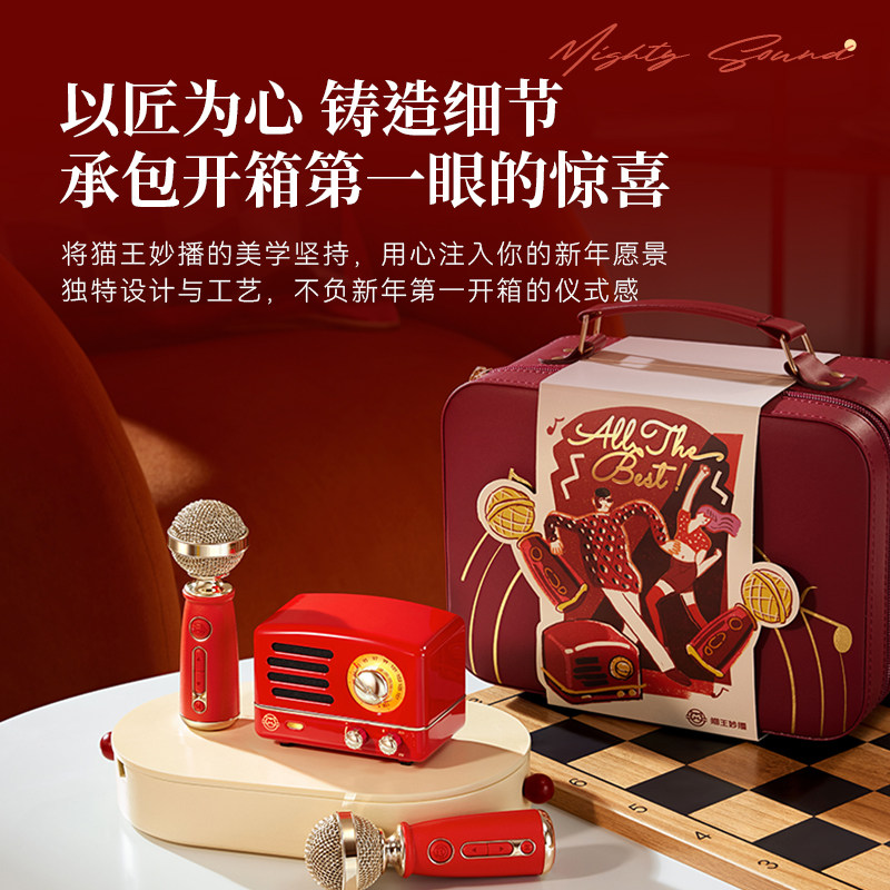 淘宝猫王音响收音机蓝牙便携式音箱双麦欢唱版家用FM生日新年高级礼物