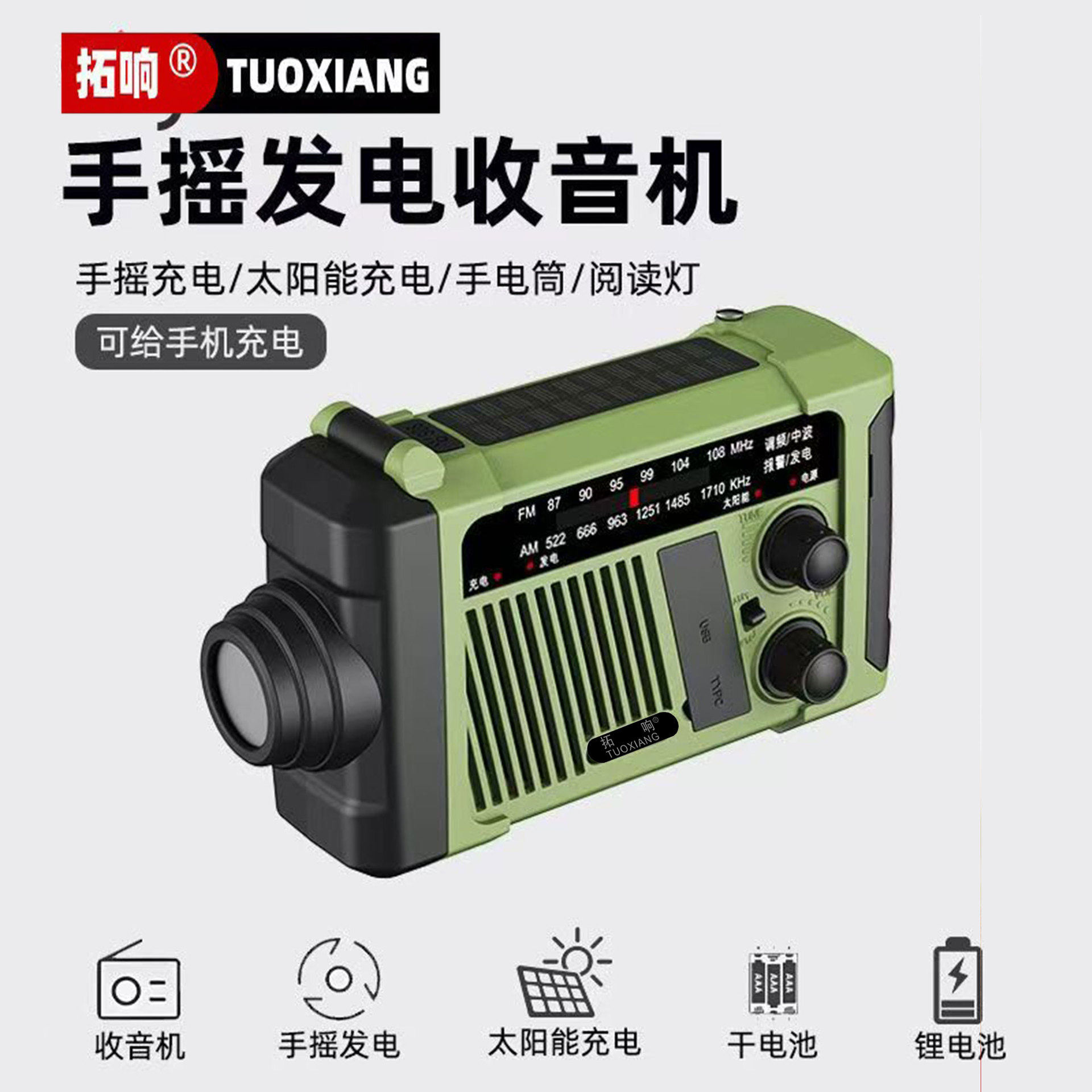 淘宝应急多功能手摇发电收音机户外太阳能照明手电筒充电宝防灾SOS