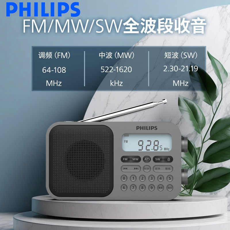 天猫飞利浦TAR6108便携全波段2026新款收音机英语听力四六级学习考试