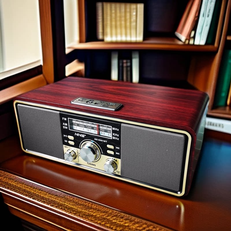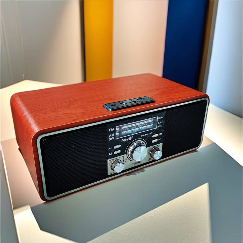 淘宝出日韩复古怀旧台式收音机调频中波短波充电式蓝牙插卡音箱双喇叭
