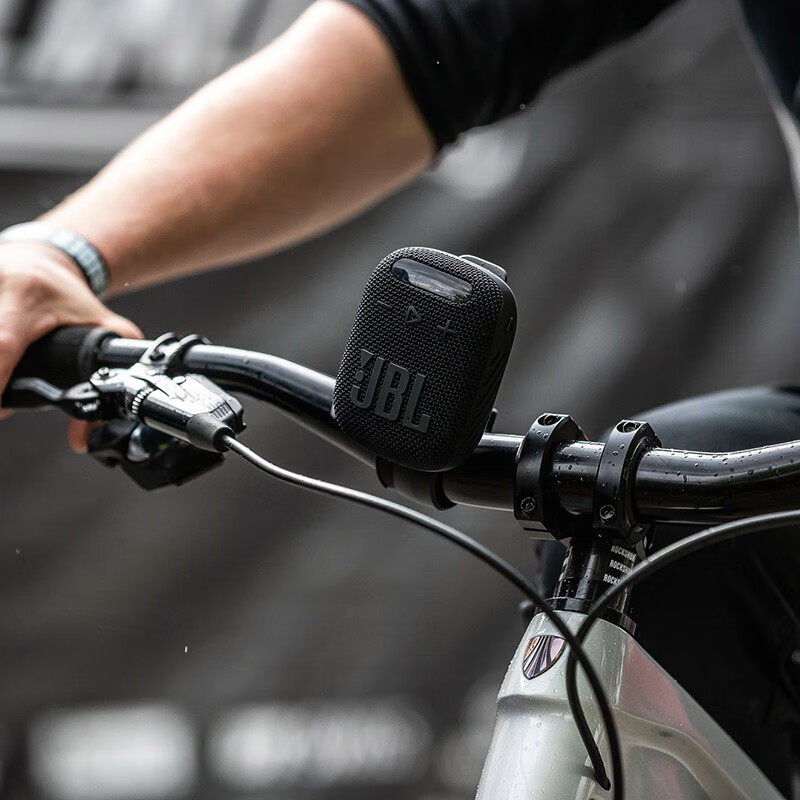 JBLWIND3是一款专为骑行爱好者设计的便携式蓝牙音箱,集多功能于一体。采用坚固防水设计(IPX5级),无惧雨水与汗渍,适合各种户外环境。内置强劲重低音单元,音质澎湃有力,骑行途中也能享受震撼音效。支持蓝牙5.0无线连接,兼容手机、平板等设备,同时配备TF卡插播和FM收音机功能,满足多样化娱乐需求。轻巧机身搭配自行车专用支架,安装便捷,骑行更自由。内置大容量电池,续航持久,是户外骑行、郊游、露营的理想伴侣,让音乐随行,畅享动感旅程。