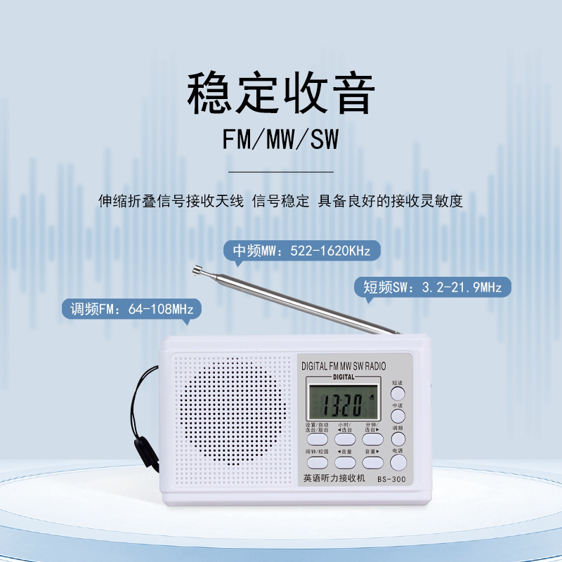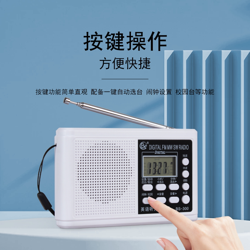 宝升多波段收音机FM调频英语四六级听力考试专用一键切换校园键