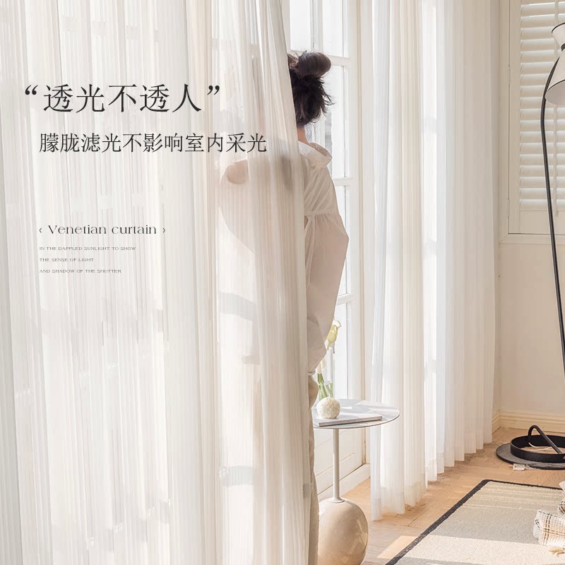白纱窗帘透光不透人窗纱帘白色布料阳台半遮光沙飘窗北欧简约纱幔