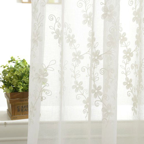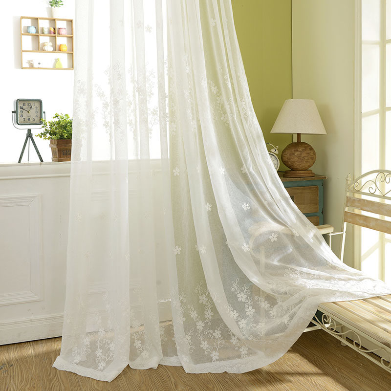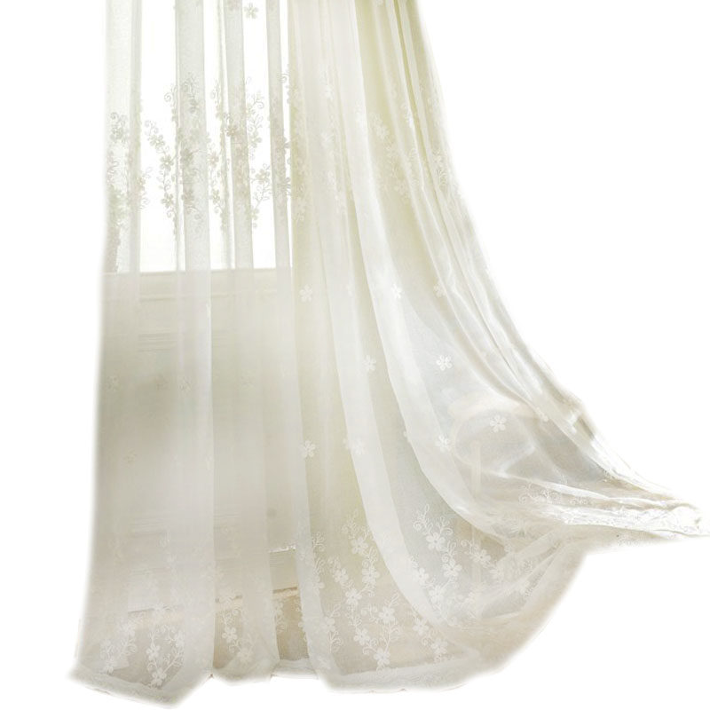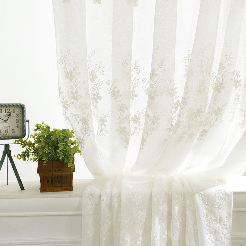 淘宝田园新中式卧室客厅刺绣窗纱白色纱帘打孔白沙罗马帘成品窗帘纷飞