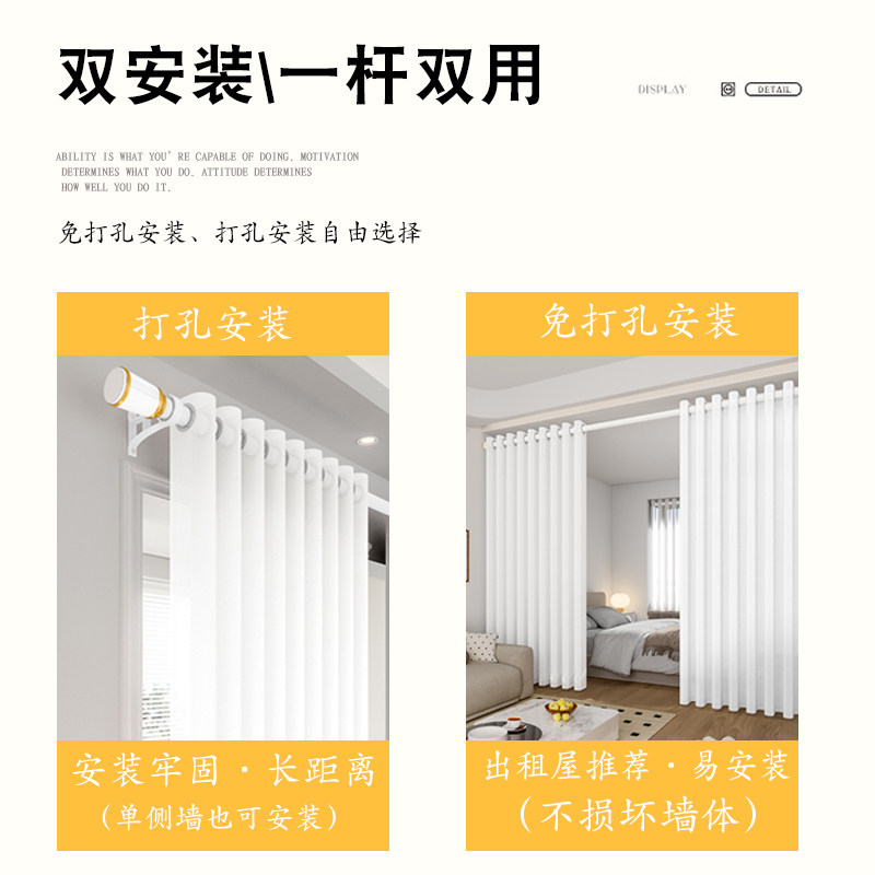 淘免打孔魔术贴穿杆窗帘窗纱帘法式白色蕾丝客厅阳台飘窗门帘短隔断