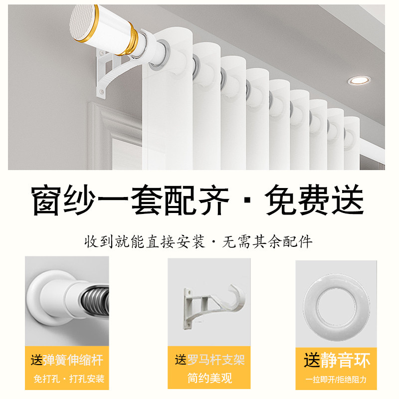 淘白纱窗帘透光不透人窗纱帘白色布料阳台半遮光沙飘窗北欧简约纱幔