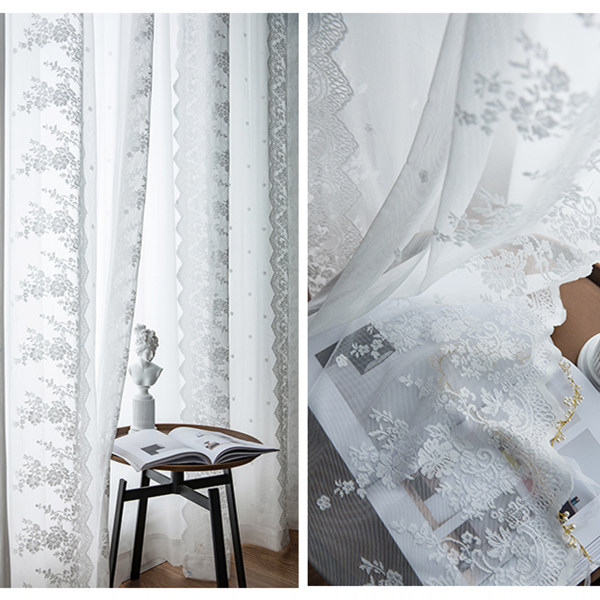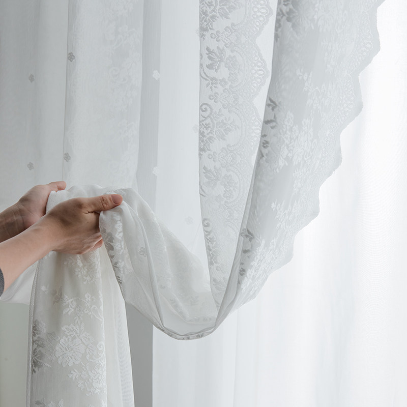 淘蕾丝绣花全遮光窗帘卧室少女梦幻帘客厅窗纱纱帘网红公主风飘窗帘