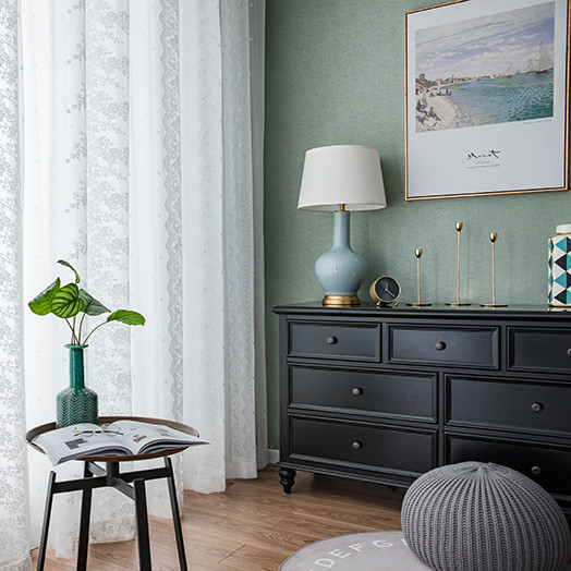 淘现代新中式水墨山水画风景客厅书房高档卧室名宿窗帘禅意纱帘窗纱