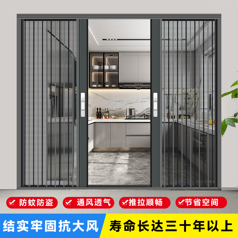 淘宝北京定制金刚网纱窗推拉式铝合金纱窗折叠纱门防蚊防盗金刚网纱门