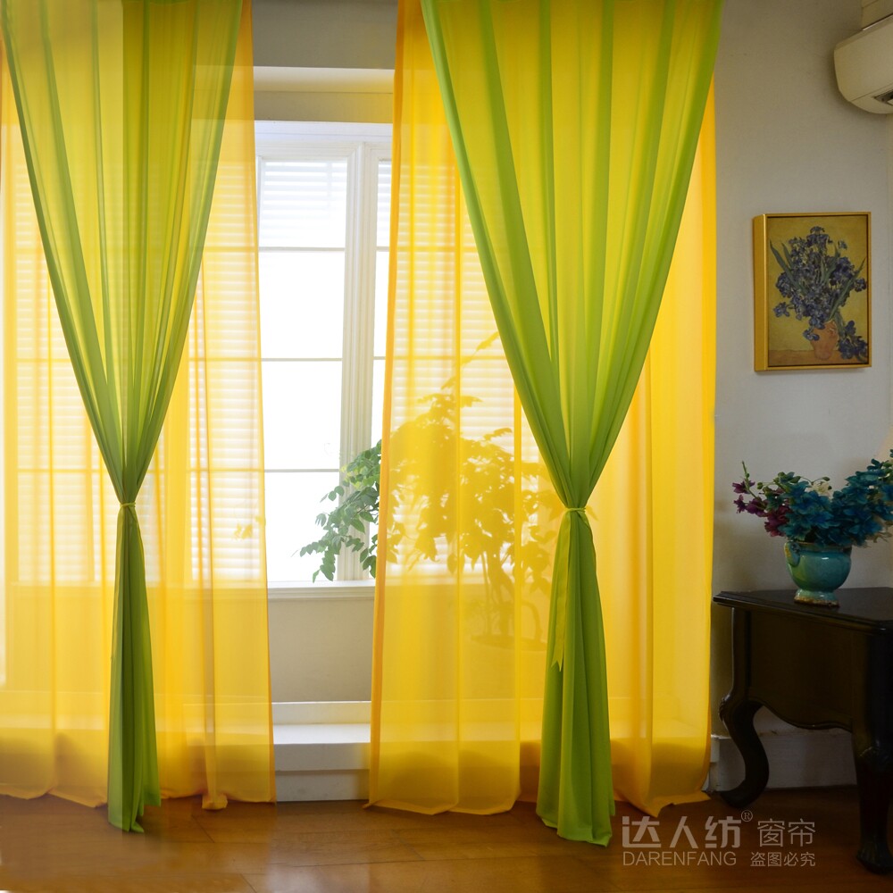 淘宝西式餐厅客厅阳台东南亚风情绿色泰式按摩店纱帘双层雪纺窗纱窗帘