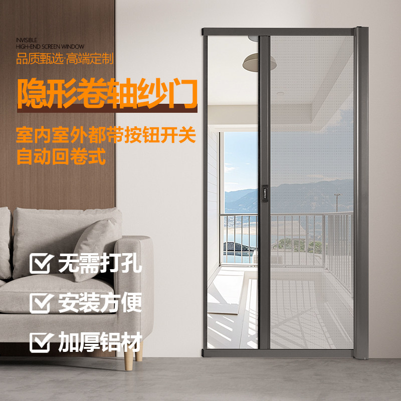 淘宝自装入户门阳台门自动回卷隐形纱门纱窗高透玻纤网防猫抓网纱门