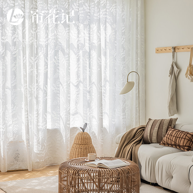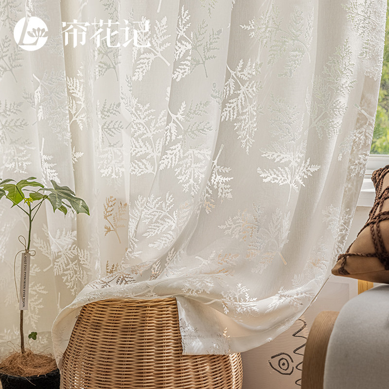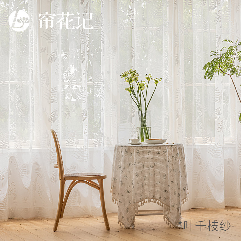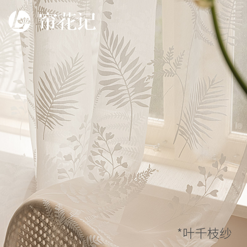 芷兰 自然浪漫的植物花纹窗纱 法式田园风蕾丝提花纱帘透光不透人