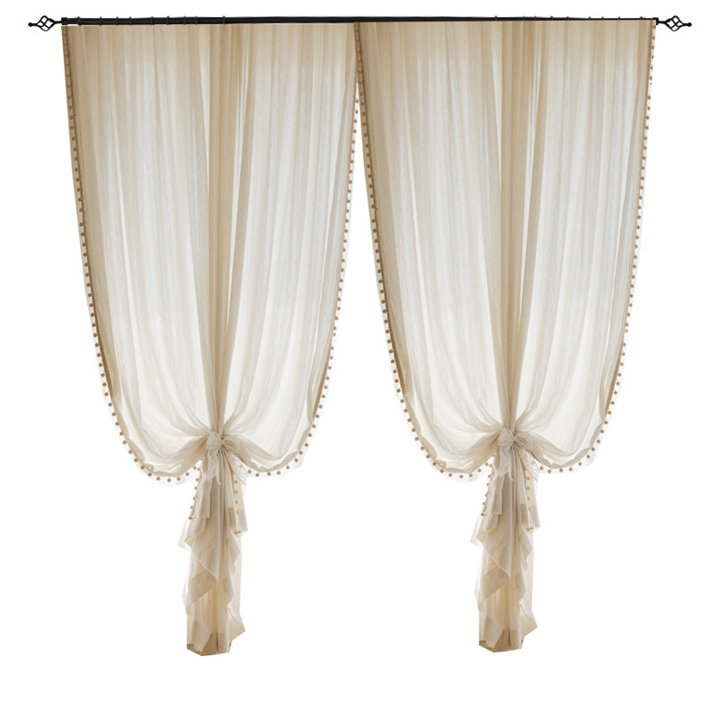 淘免打孔魔术贴穿杆窗帘窗纱帘法式白色蕾丝客厅阳台飘窗门帘短隔断