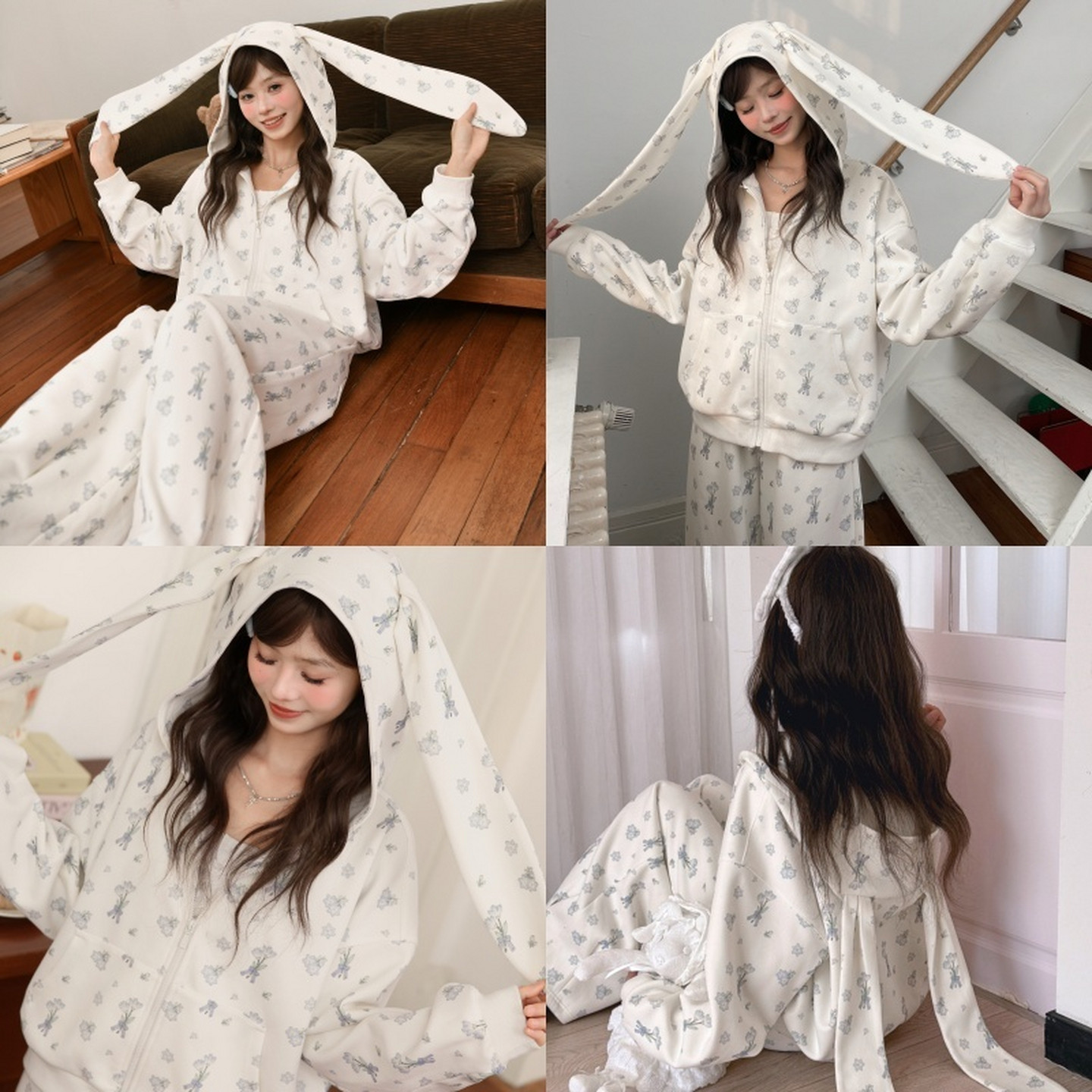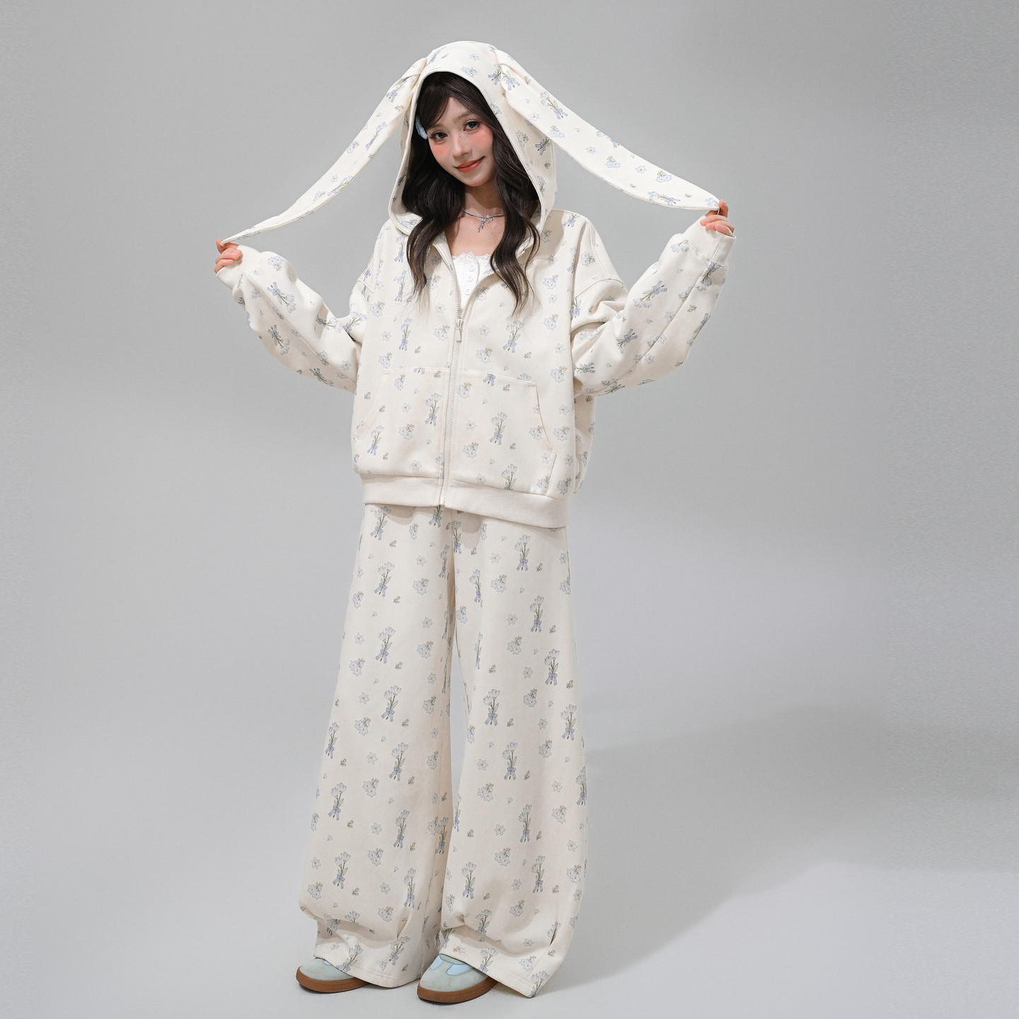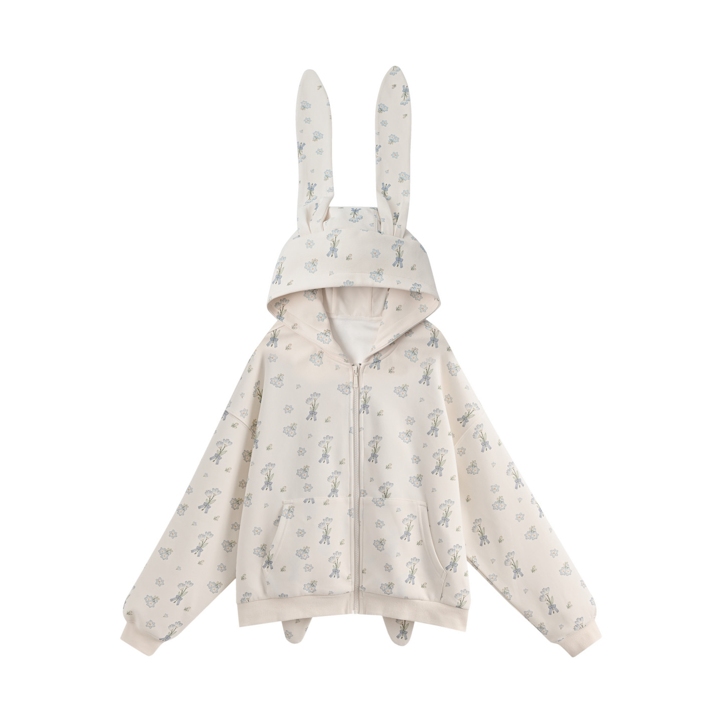 淘宝森女部落甜美风兔耳连帽外套女春季新款宽松显瘦萌趣印花百搭卫衣