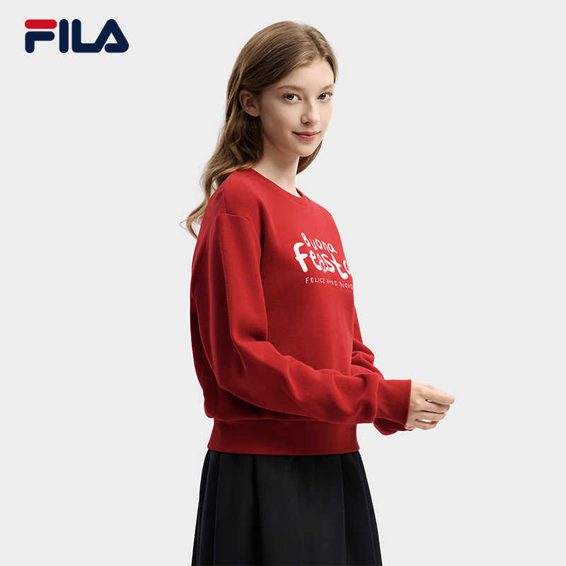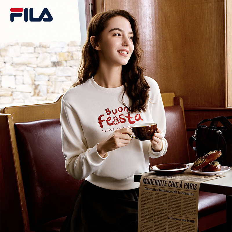 FILA 斐乐官方女子套头卫衣2025冬新款简约休闲舒适针织长袖上衣