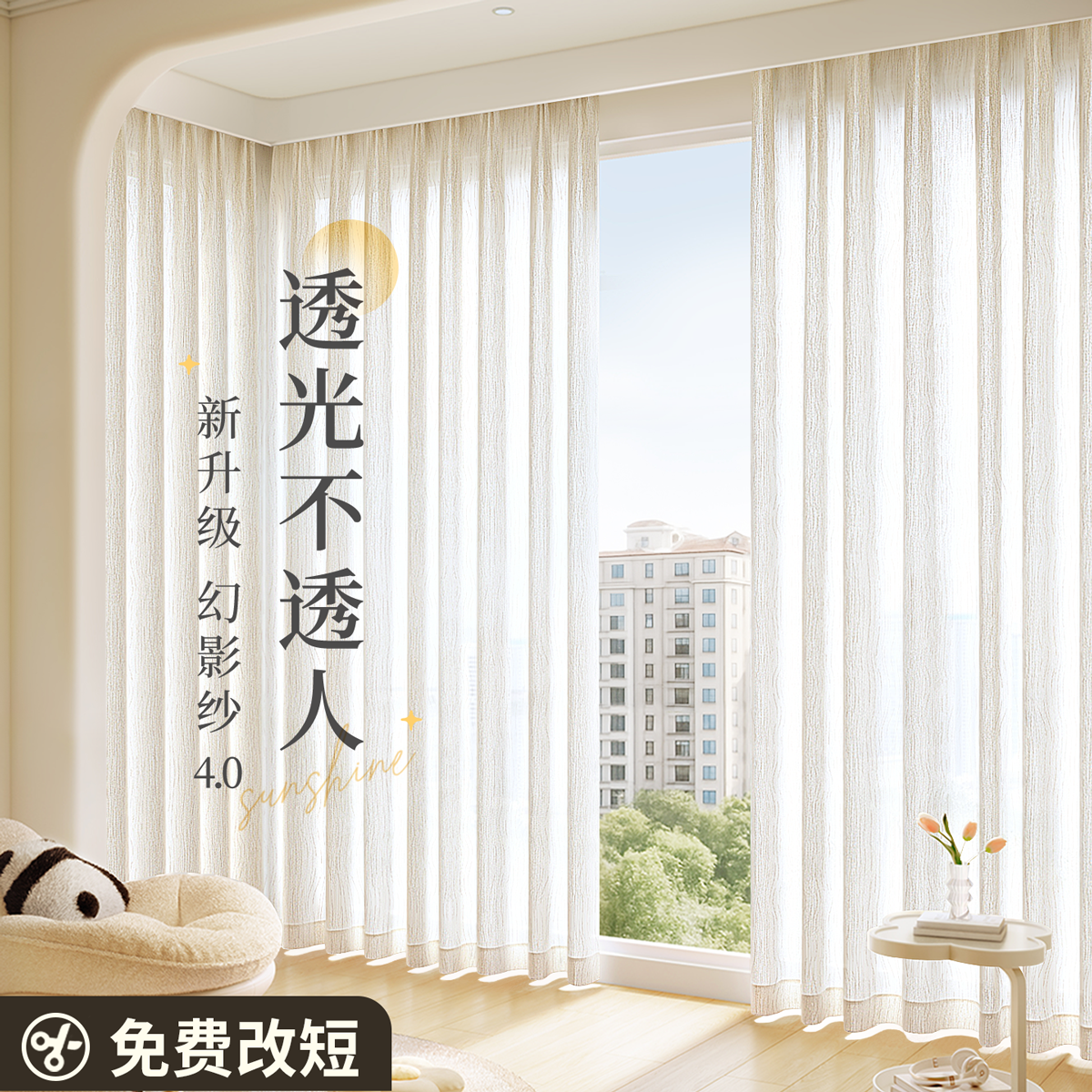 天猫幻影纱窗帘纱帘透光不透人遮阳防晒客厅飘窗遮光2025新款窗纱白纱
