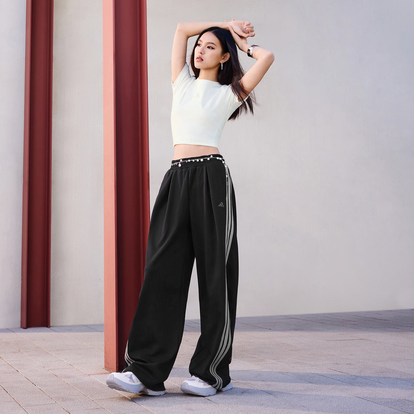 天滔搏adidas阿迪达斯女子梭织长裤运动裤直筒阔腿裤宽松JE1306