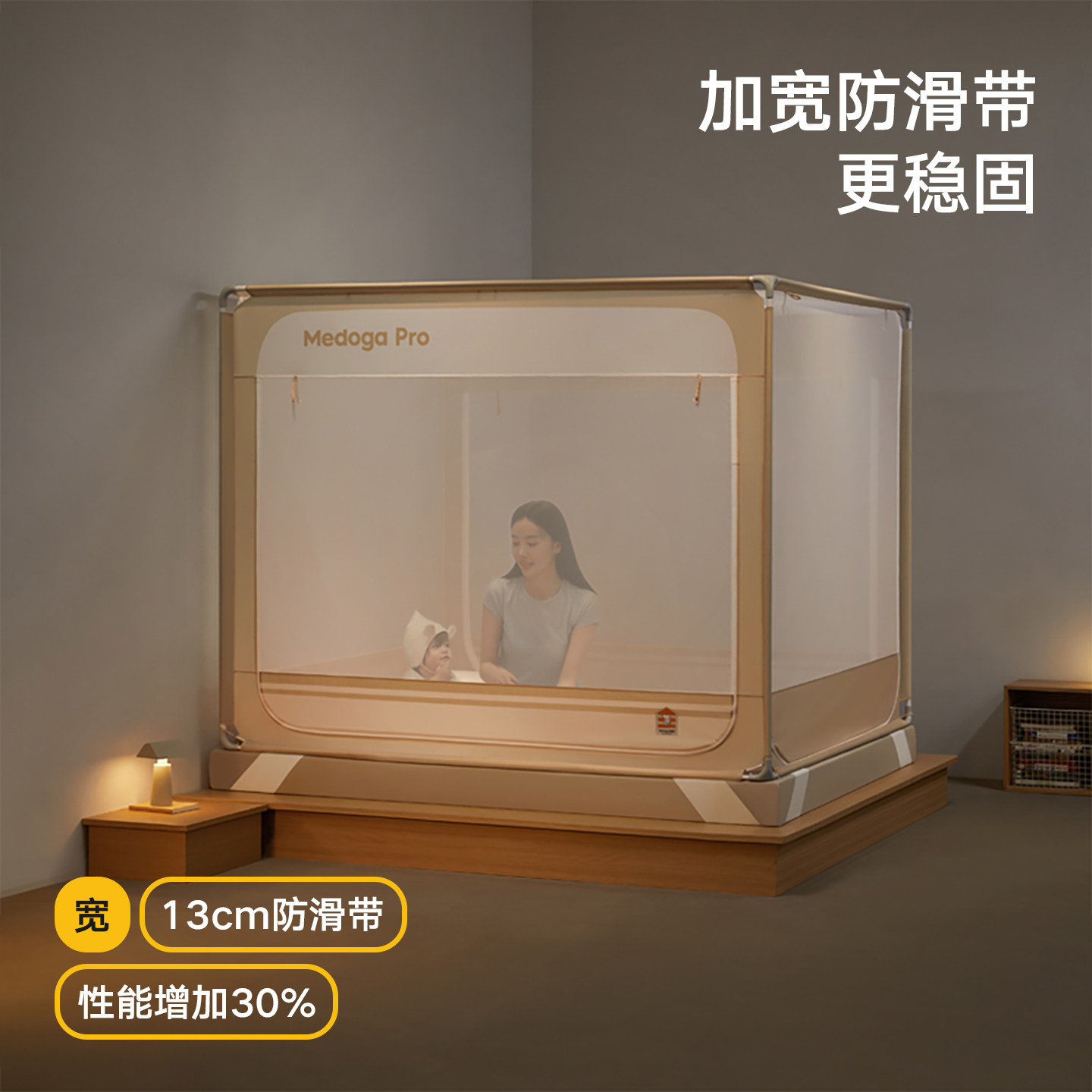 【安睡舱Pro】美朵嘉2026新款婴儿防摔蚊帐,专为宝宝安全睡眠设计。采用全底床单式一体化结构,360°无缝防护,有效防止宝宝翻滚跌落,同时阻隔蚊虫侵扰。精选亲肤透气网眼面料,轻盈耐用,支持机洗不变形。顶部加高加固支架,稳固承重,搭配隐形拉链门帘,进出便捷不夹手。底部全包边设计,贴合床垫无缝隙,杜绝安全隐患。简约北欧风外观,适配多种家居风格。通过国家婴幼儿纺织品安全认证,无毒无刺激,守护宝宝每一夜安睡。安睡舱Pro,让爱与安心常伴左右。