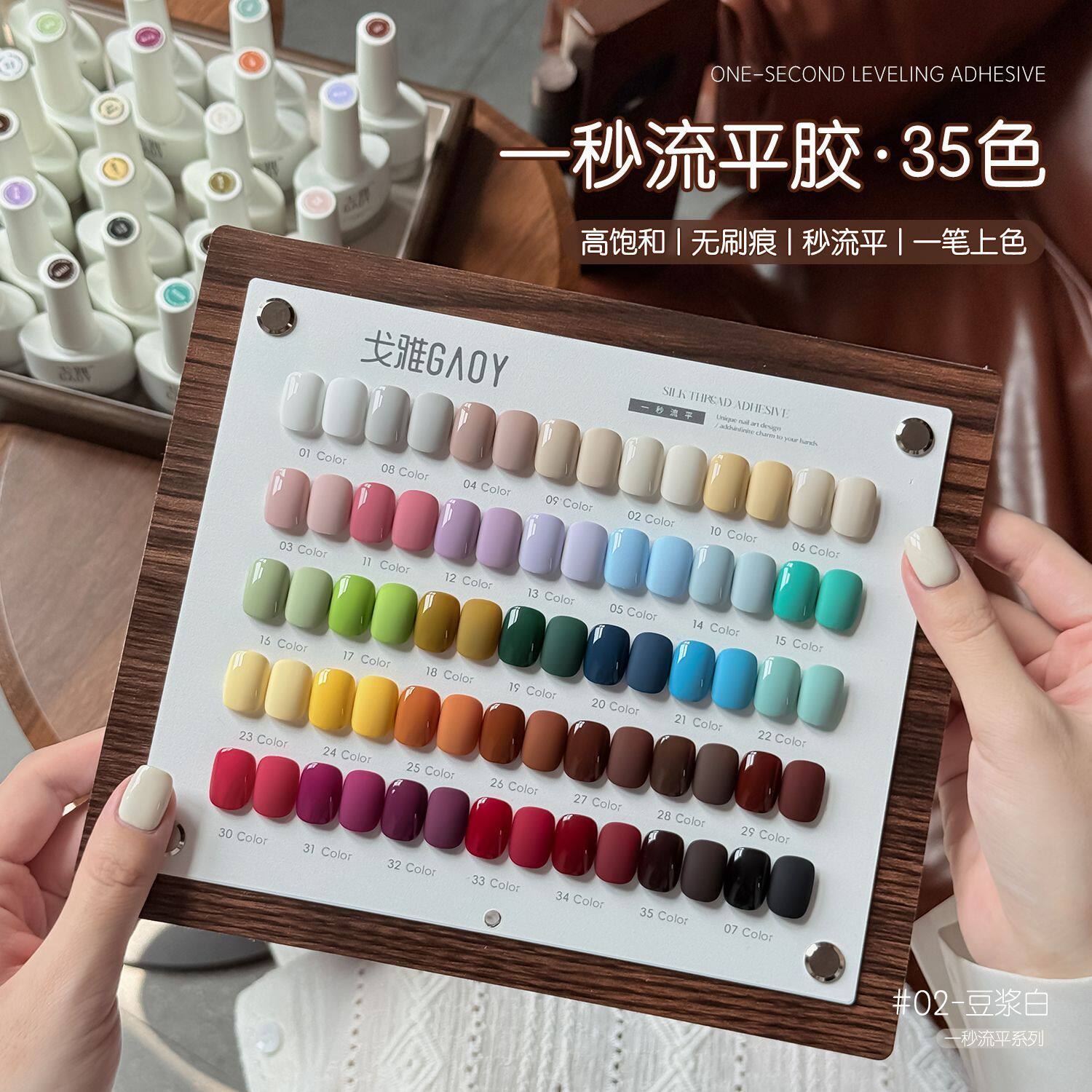 淘宝戈雅流平胶35色一秒流平胶美甲店专用甲油胶套装黑色酸奶白梅子色