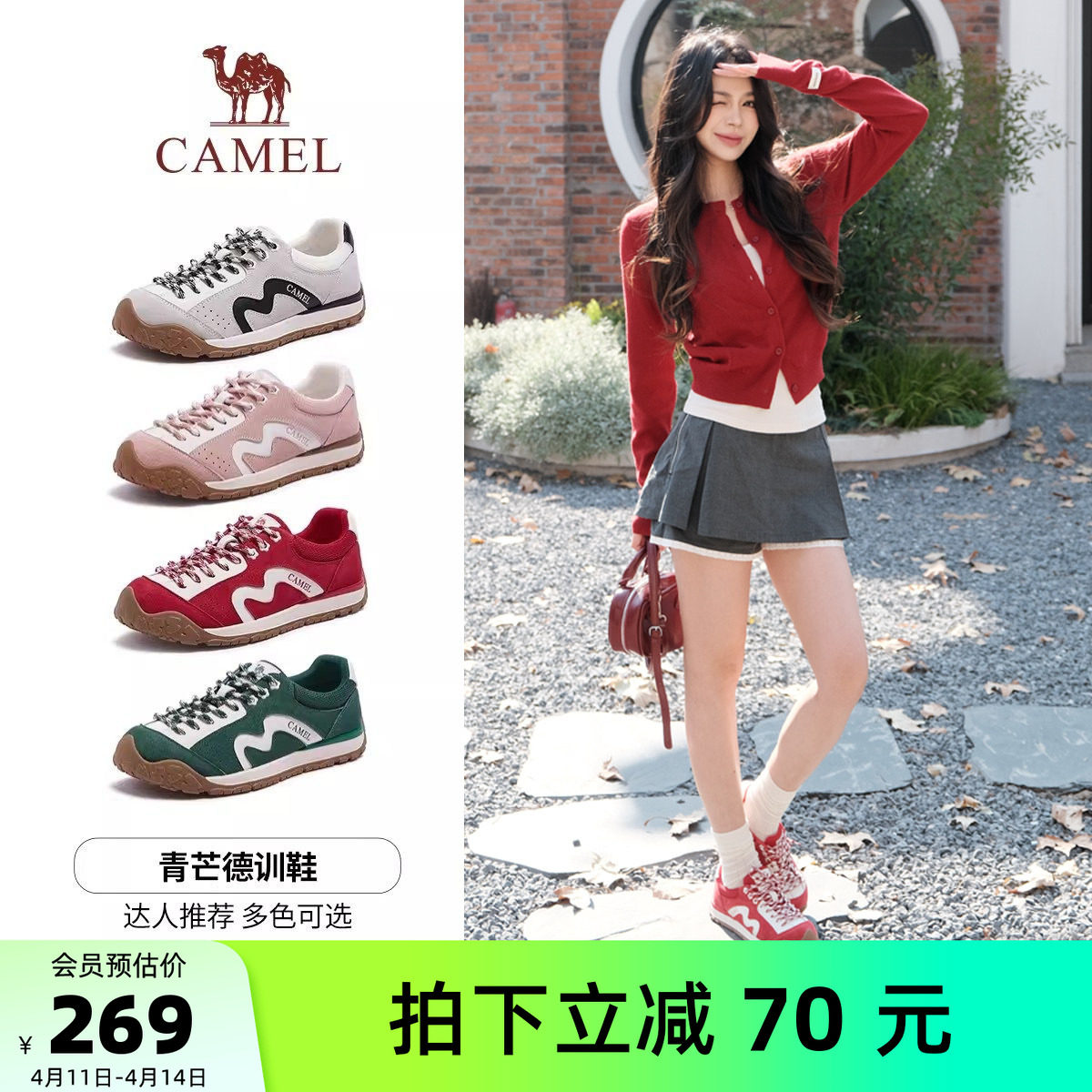 天猫【李柯以同款】骆驼青芒德训鞋女鞋2026春季新款户外休闲运动鞋女