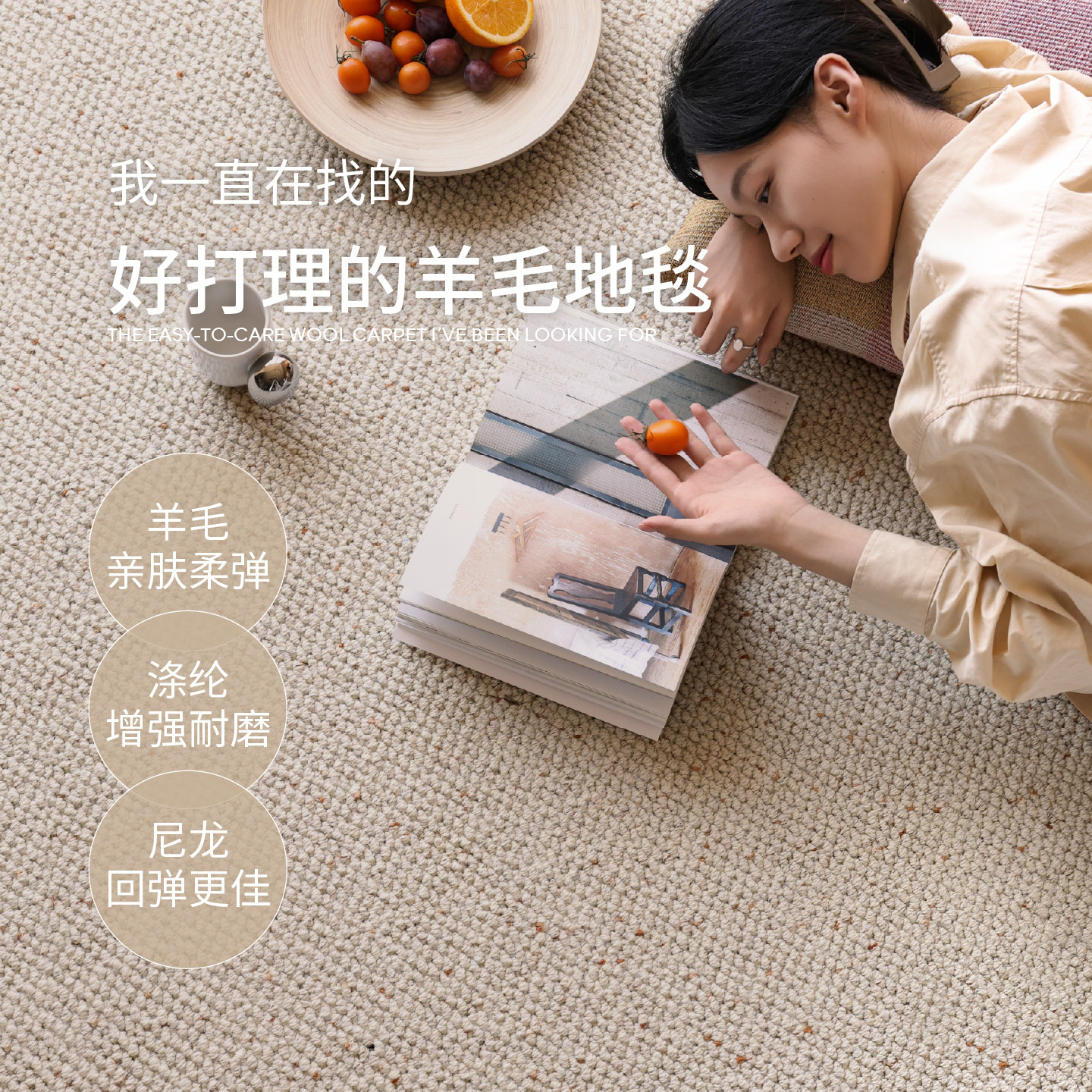 赛波斯白沙滩无胶地毯客厅防水抗污现代简约无甲醛卧室轻奢高级