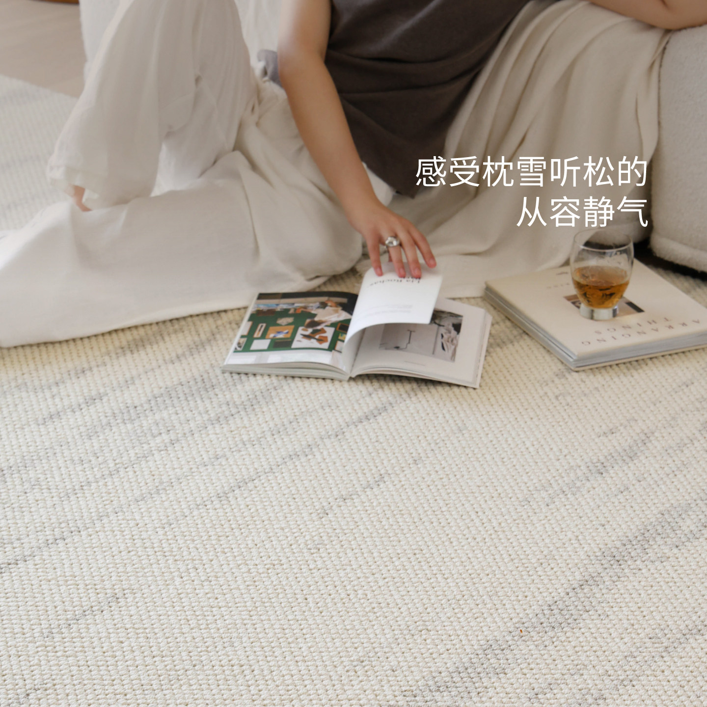 赛波斯白沙滩无胶地毯客厅防水抗污现代简约无甲醛卧室轻奢高级