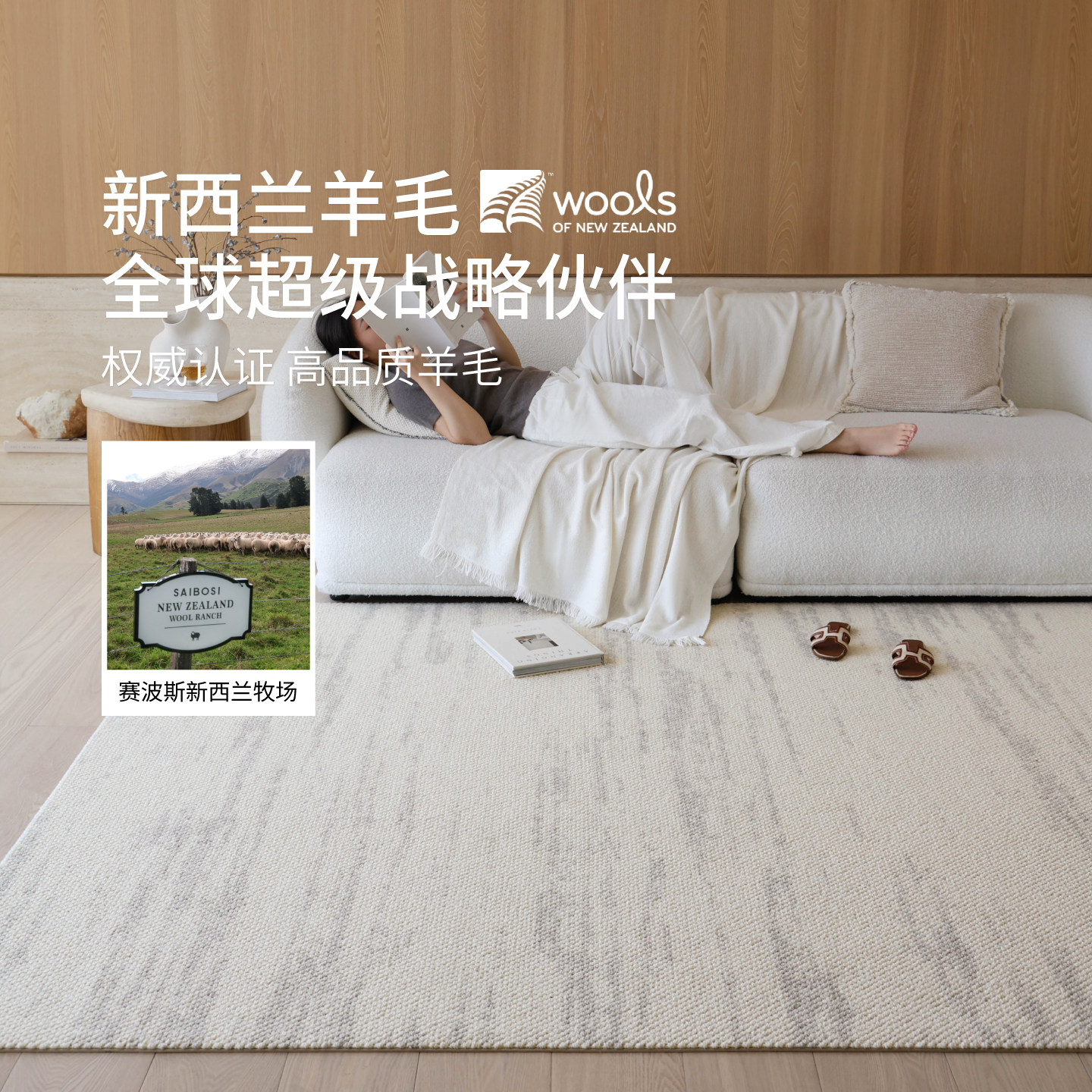 赛波斯进口羊毛床边毯卧室地毯客厅简约素色轻奢高级感房间床尾毯