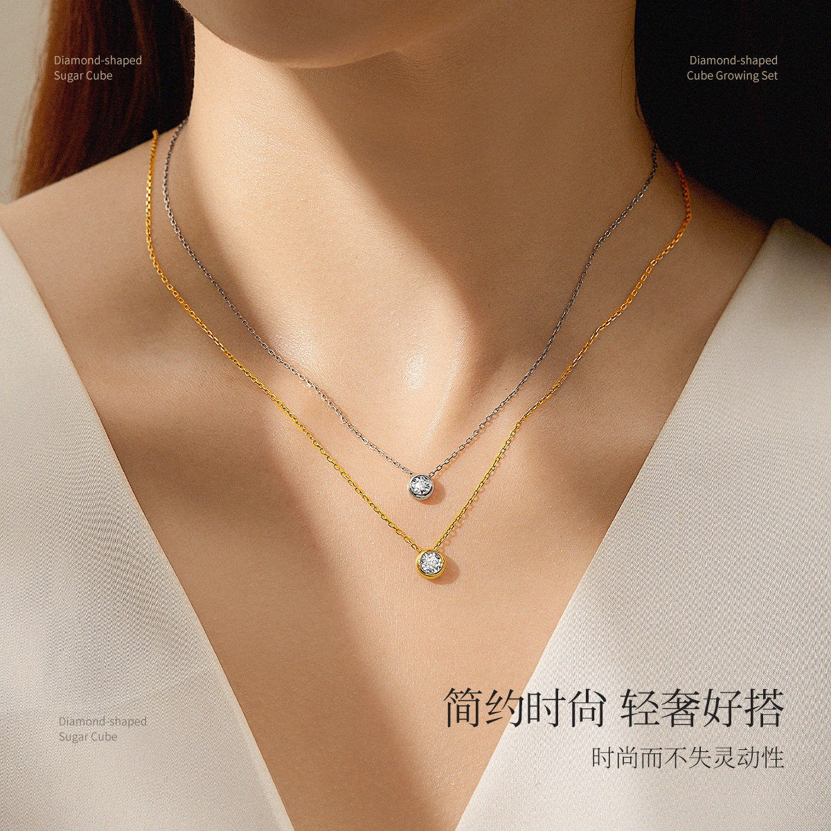 天老庙18K金几何方形简环项链两戴环环相扣双环ins风时尚设计感