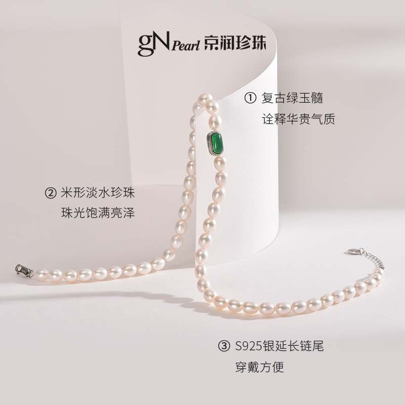 天猫京润珍珠 碧语银镶碧玺淡水珍珠项链6-8mm米形珍珠项链送妈妈女D