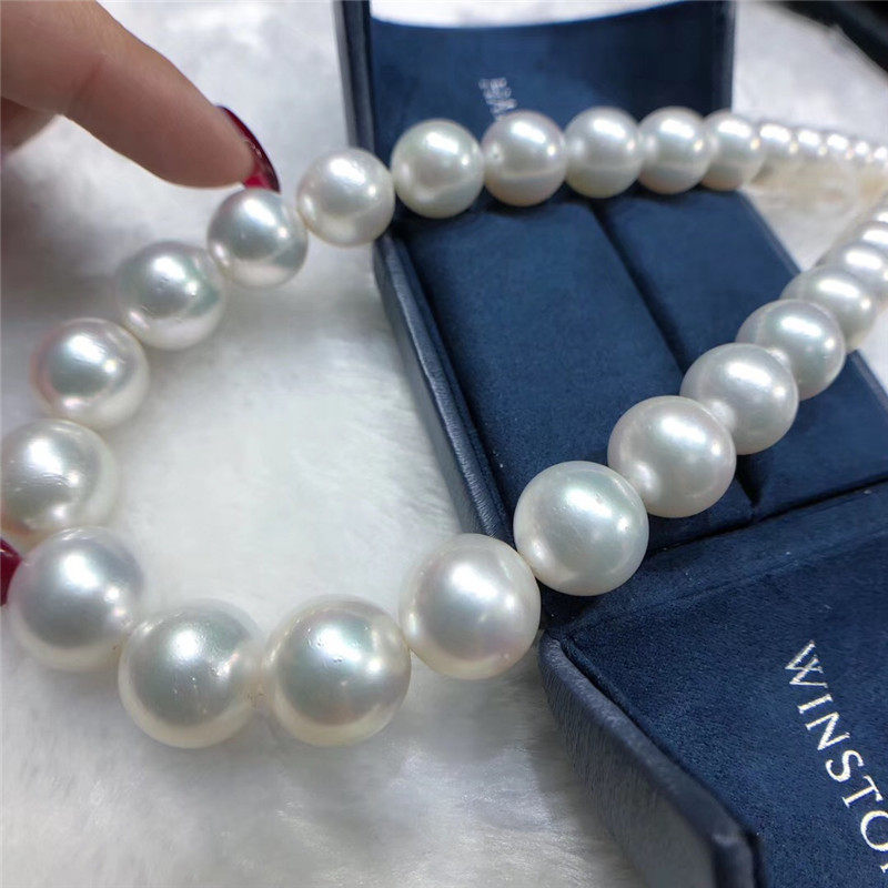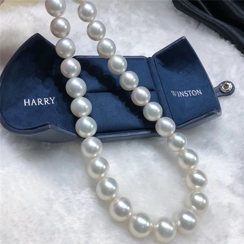 天京润珍珠 碧语银镶碧玺淡水珍珠项链6-8mm米形珍珠项链送妈妈女D