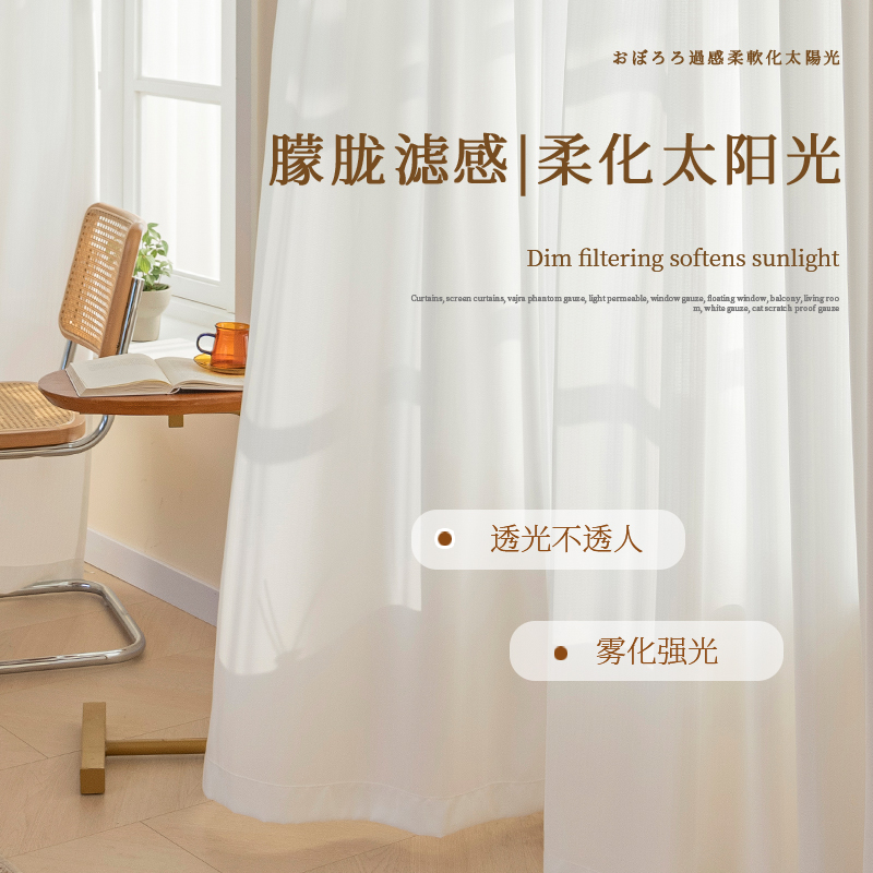 天猫幻影纱透光不透人纱帘客厅飘窗阳台窗纱防晒加厚白纱窗帘现代简约
