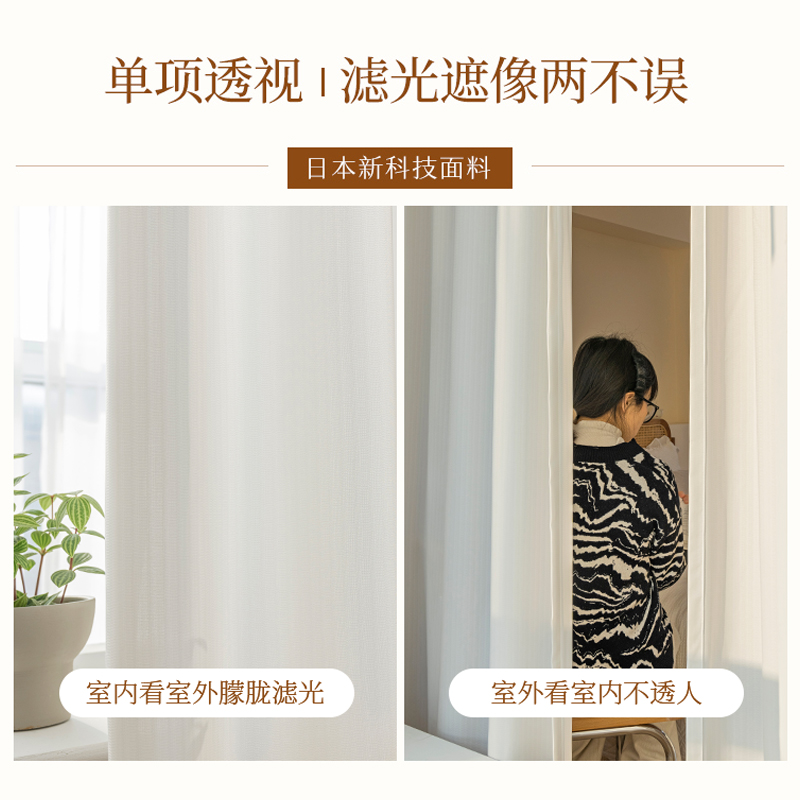 【日本进口】定制纱帘客厅窗纱透光不透人卧室窗帘纱高端日式9513