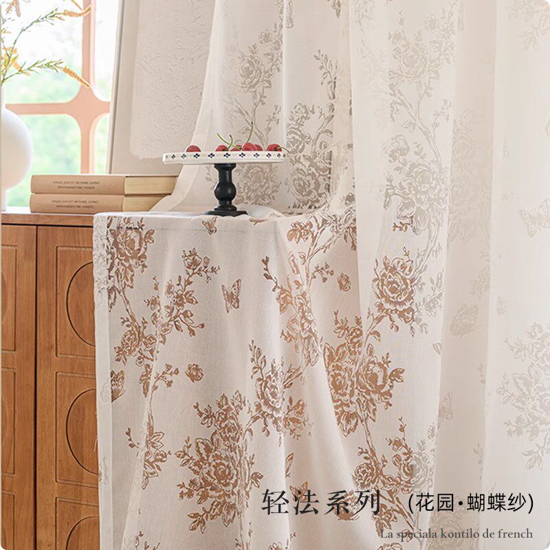 淘宝法式窗纱帘透光不透人2024新款客厅阳台飘窗薄纱少女田园风遮挡帘