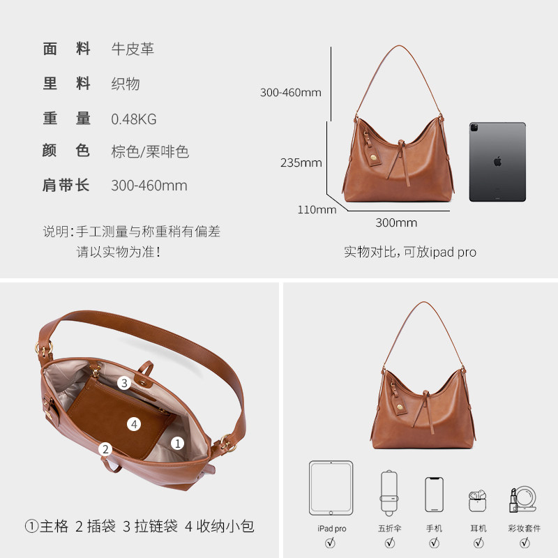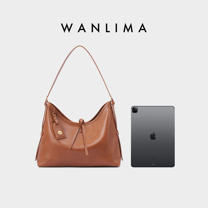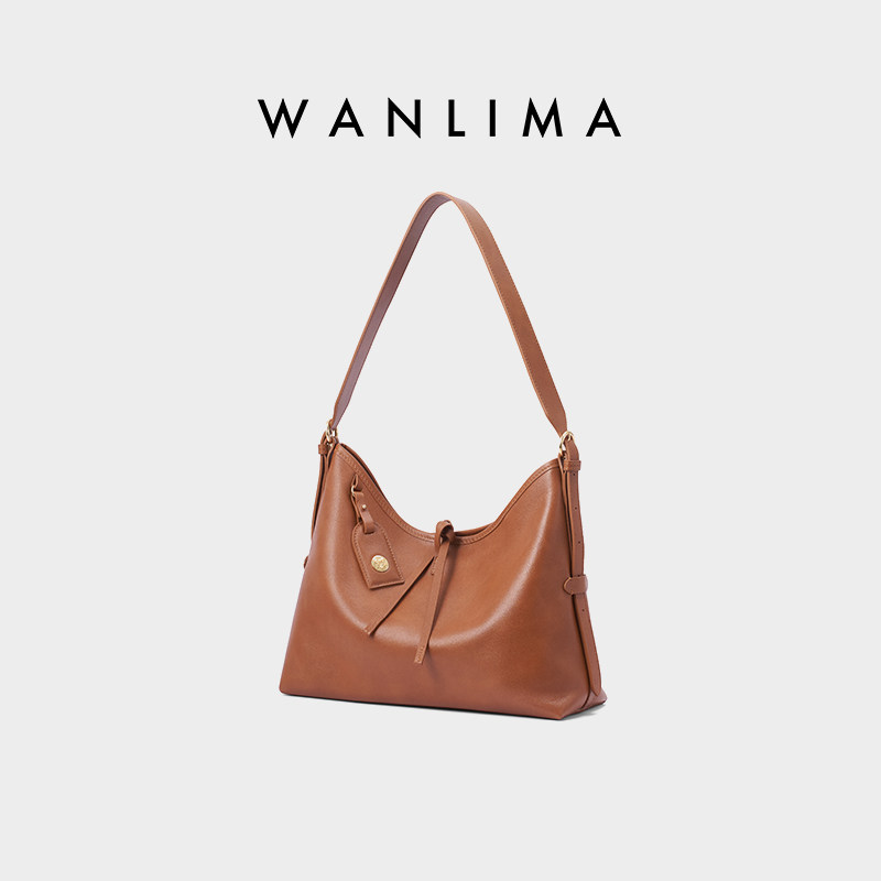 天猫万里马极简HOBO包女植鞣质感软托特包单肩腋下斜挎真皮子母包