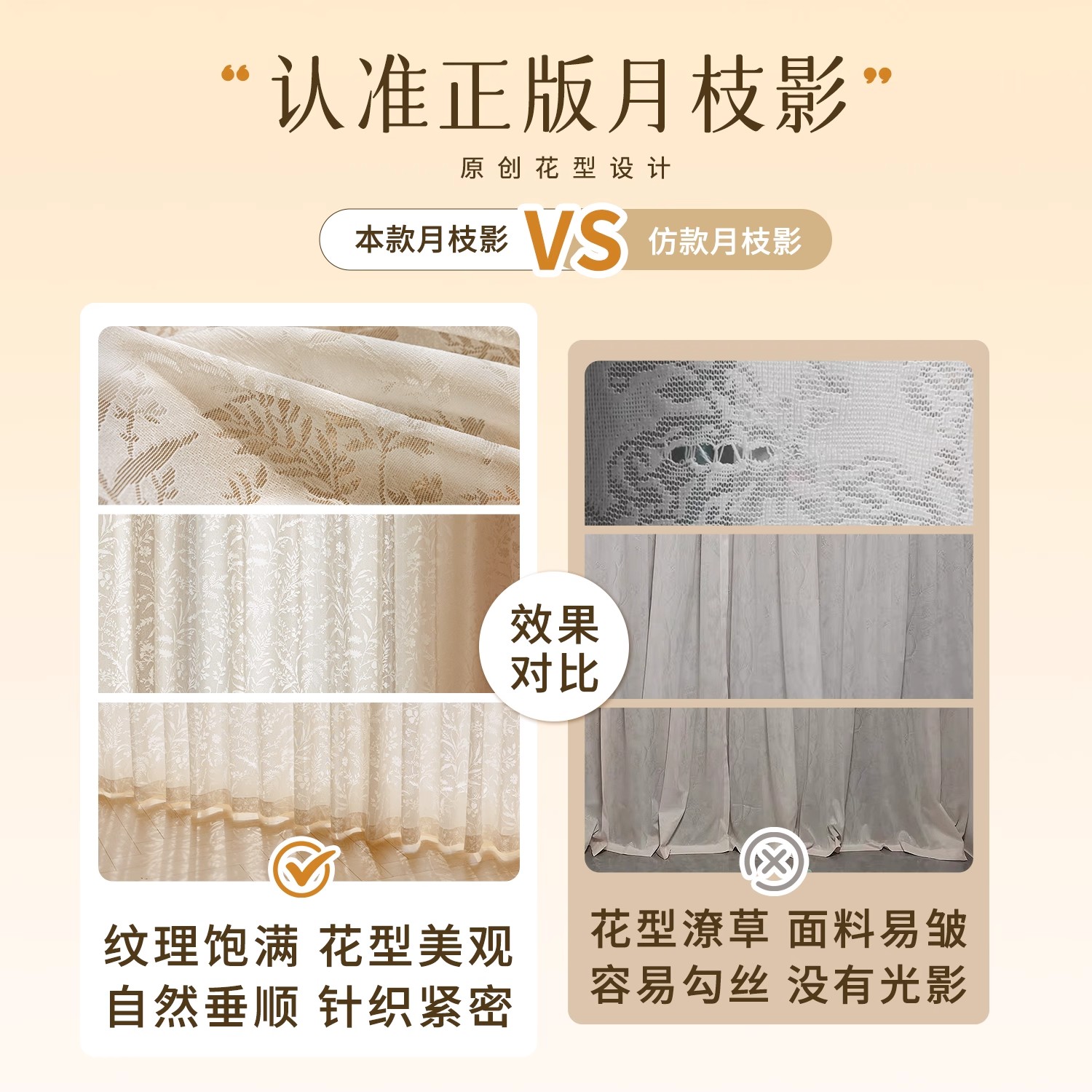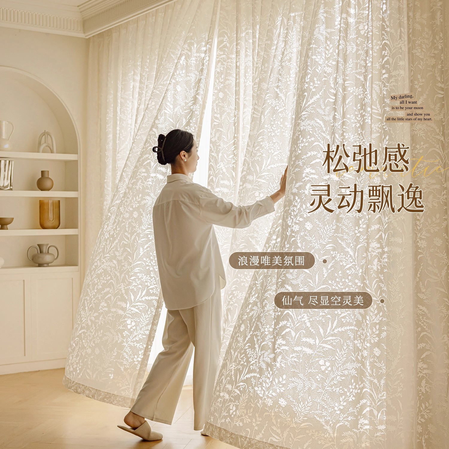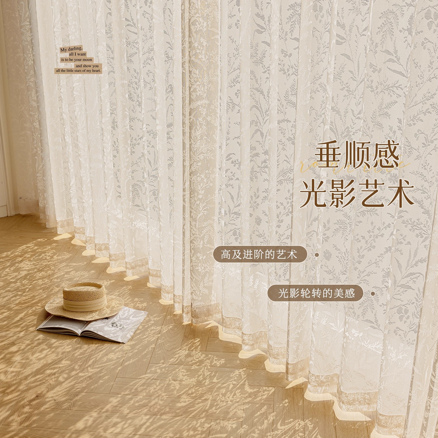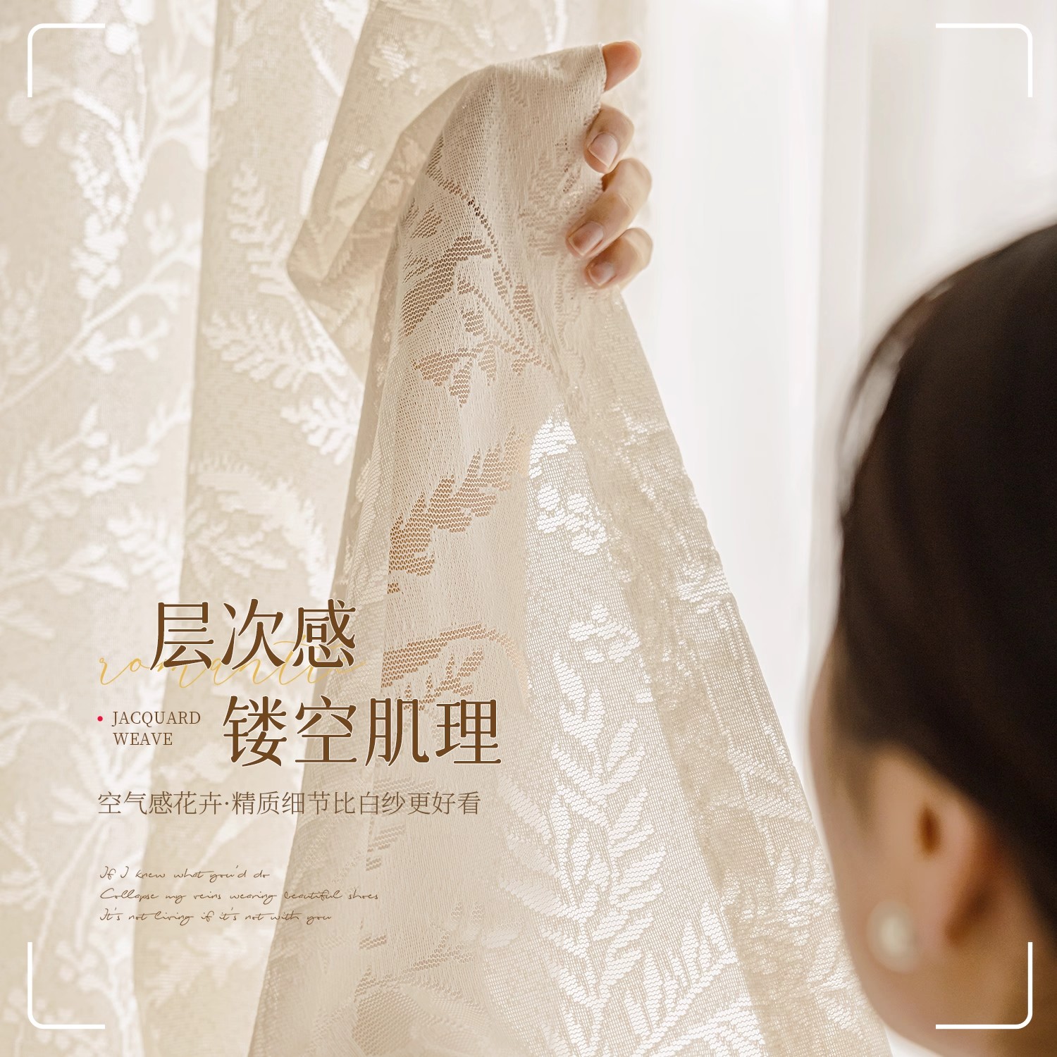 天猫镂空月枝影法式浪漫纱帘窗帘飘窗客厅阳台窗纱透光不透人轻奢特价