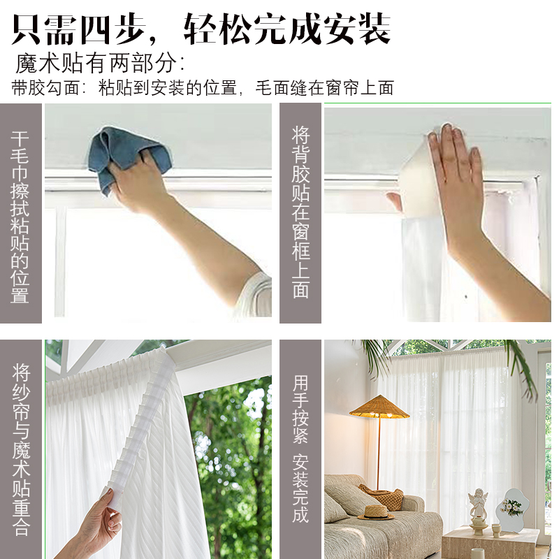 淘宝简易魔术贴纱帘窗纱飘窗阳台白色短帘不透人窗帘遮阳卧室防晒沙帘