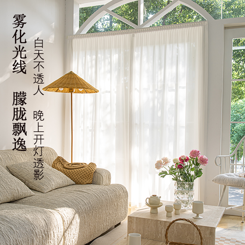 幻影纱透光不透人纱帘客厅飘窗阳台窗纱防晒加厚白纱窗帘现代简约