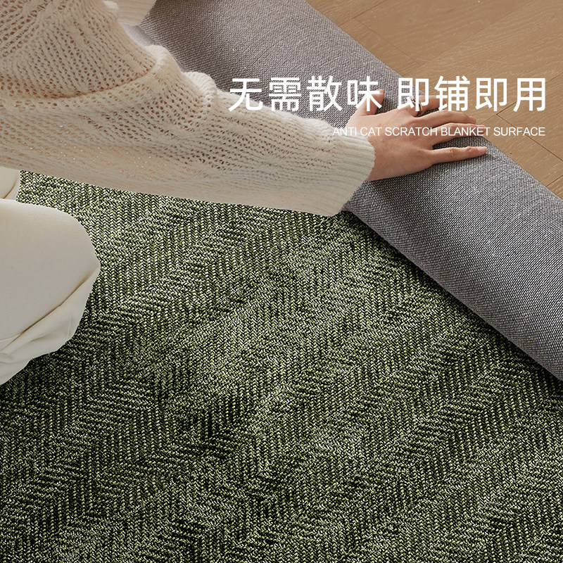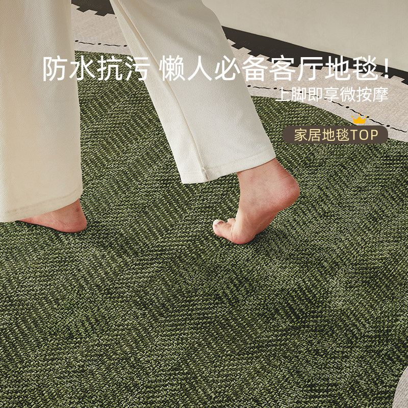 法式客厅地毯2026新款复古风绿色波浪边免洗可擦卧室地垫防水防污
