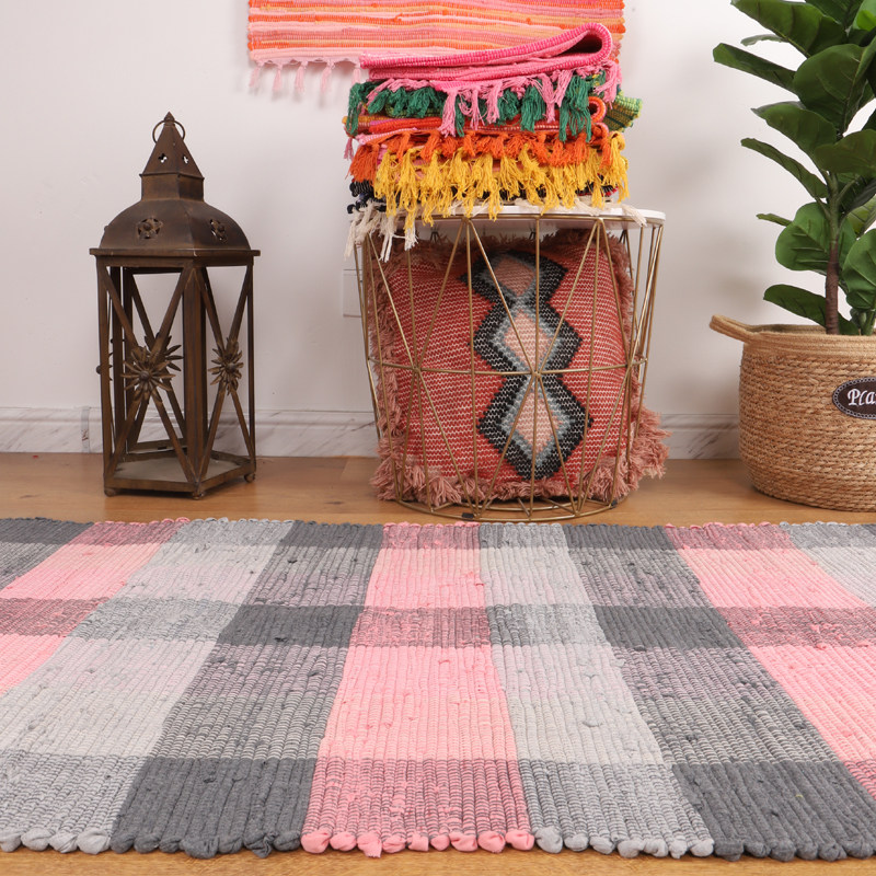淘宝雅邦纯棉布条手工编织地毯卧室厨房飘窗卫生间浴室门口地垫小脚垫