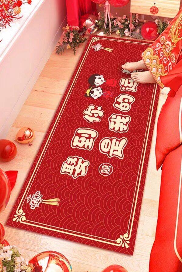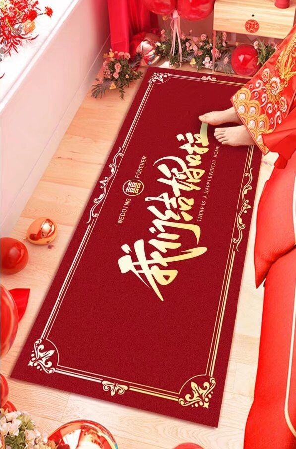 这款中国风婚房地毯专为新人卧室精心打造,融合传统喜庆元素与现代家居美学。采用优质短绒面料,触感柔软舒适,防滑底背设计安全稳固。长条形设计完美契合床尾或床边,既实用又美观。中央精致刺绣“囍”字图案,搭配祥云、牡丹等传统纹样,寓意百年好合、富贵吉祥。红色主调象征幸福美满,为婚房增添浓郁中式浪漫氛围。适用于婚礼当天布置或婚后日常使用,是兼具仪式感与实用性的结婚必备装饰品,让爱巢从细节处洋溢温馨与祝福。